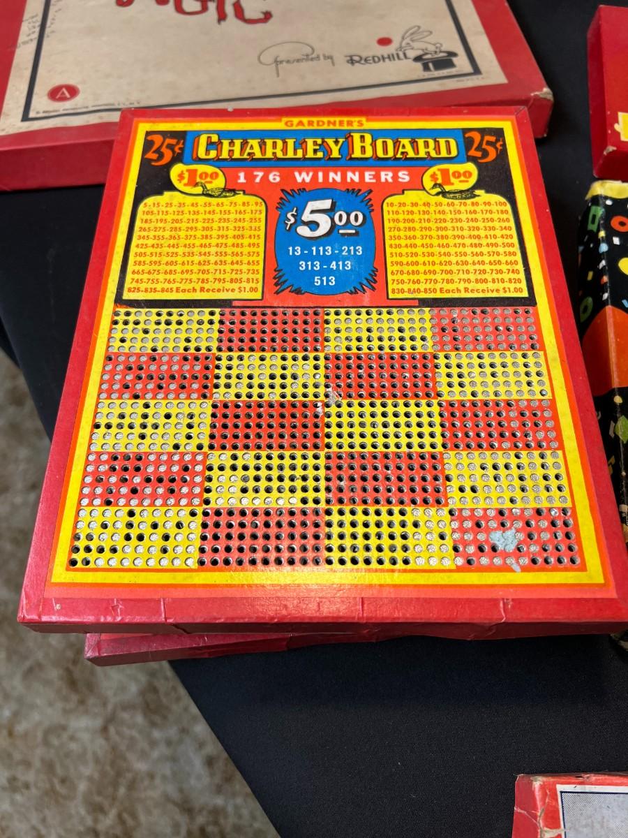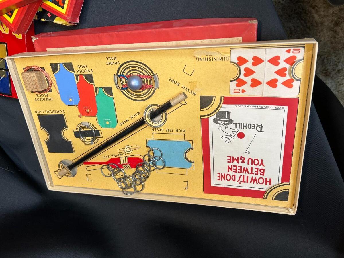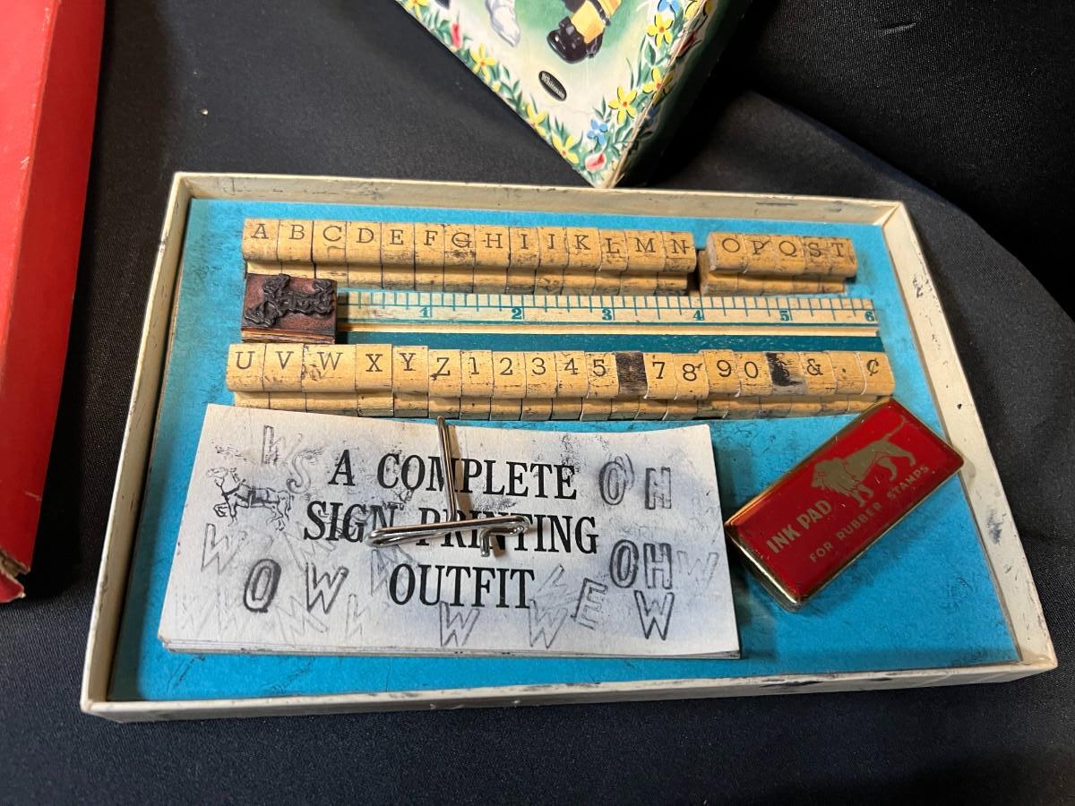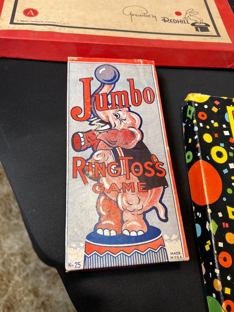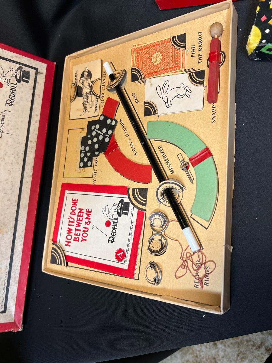 Lot of 9 Vintage Boxed Toy Games. Includes rare antique Redhill Magicians Toy Set (2), Tommy's Playtime Printer, Charley Board (3), Jumbo Ringtoss, 1950s Whitman Playmates Paper Dolls, Blondie's Comic Construction Play Set. Condition as shown.