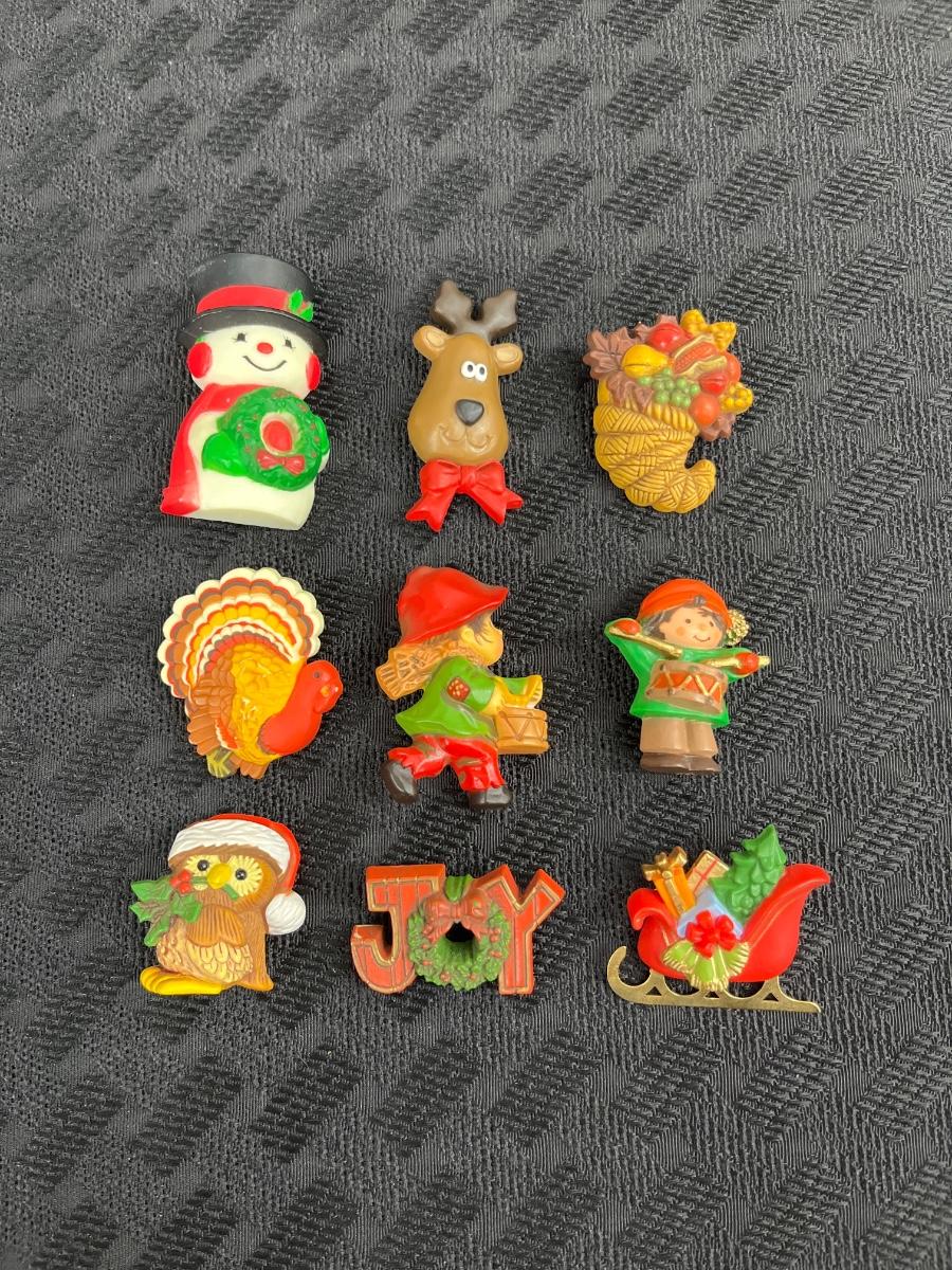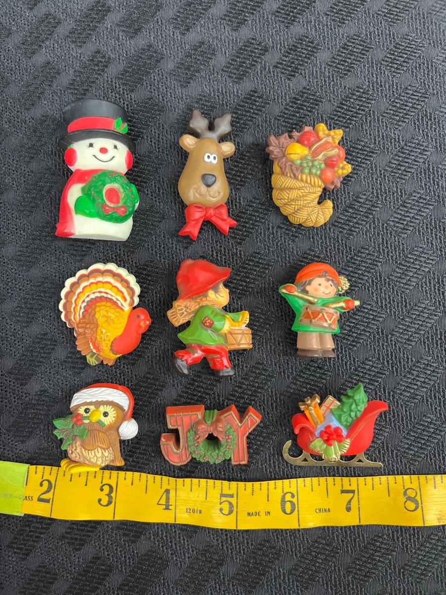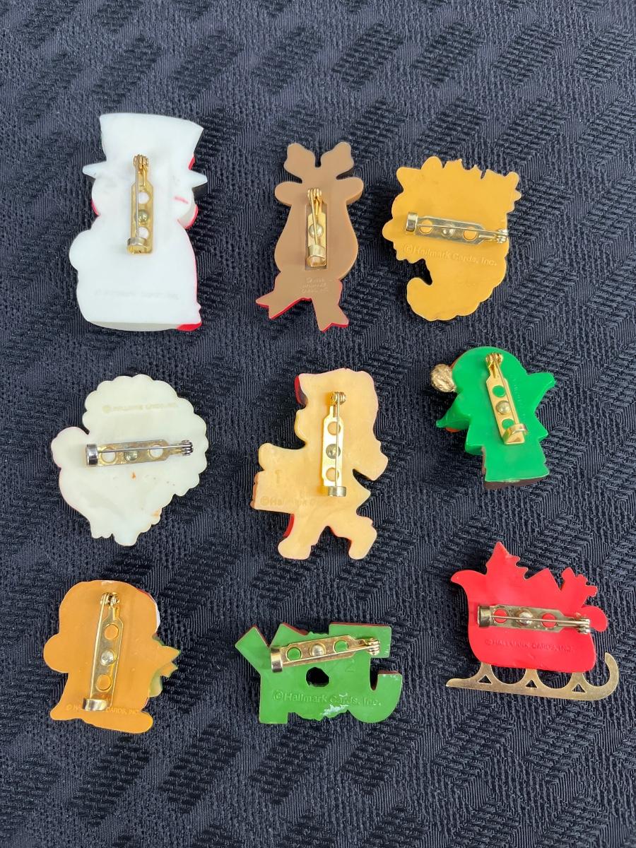 Vintage lot 9 all signed Hallmark holiday themed pins/brooches