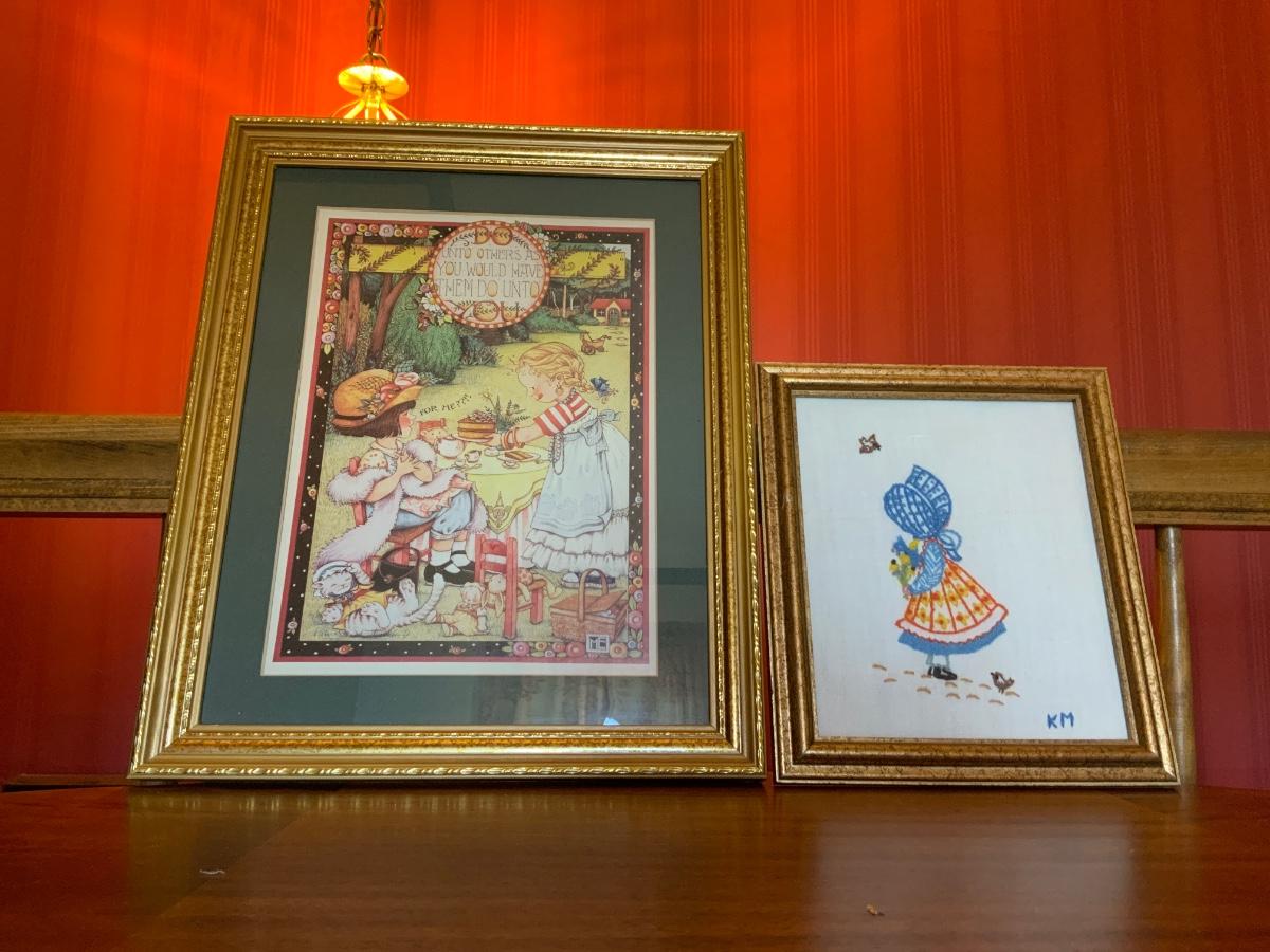 Lot of a Vintage Mary Engelbreit print and hand stitched little girl print 1977