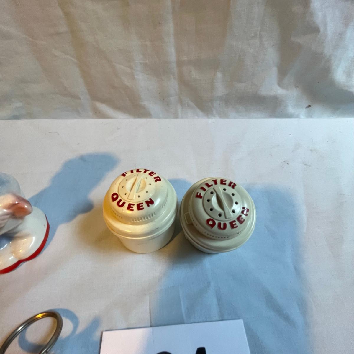 Filter Queen Salt & Pepper, Tappan Chef shaker, & Pepsi 6 pack. Pepsi is missing bottles.