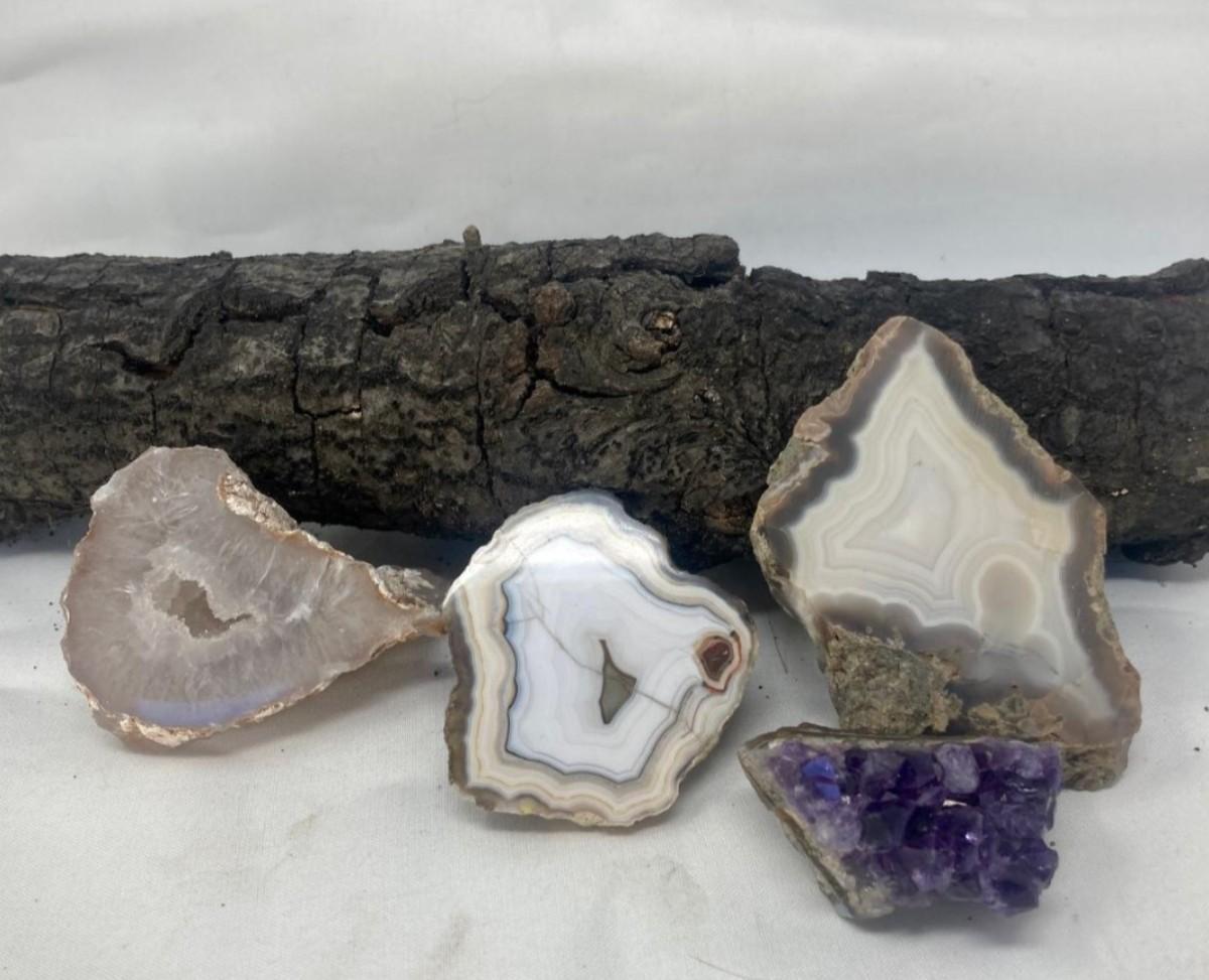 Lot of Agates and Natural Amethyst Geode