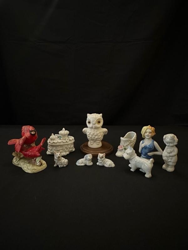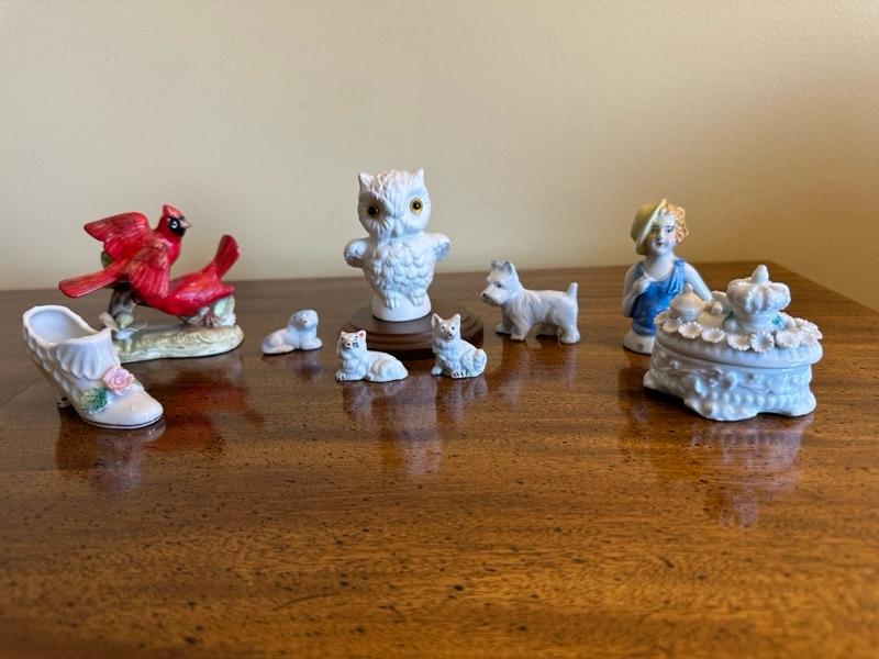A Collection of Precious Mini Figurines. Many have "Japan" on the bottom.