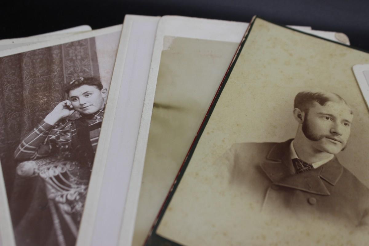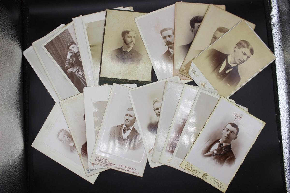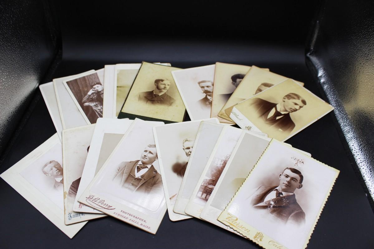 Lot of Antique 19th Century White & Sepia Matted Photograph Studio Portrait Cards of Men and Women
