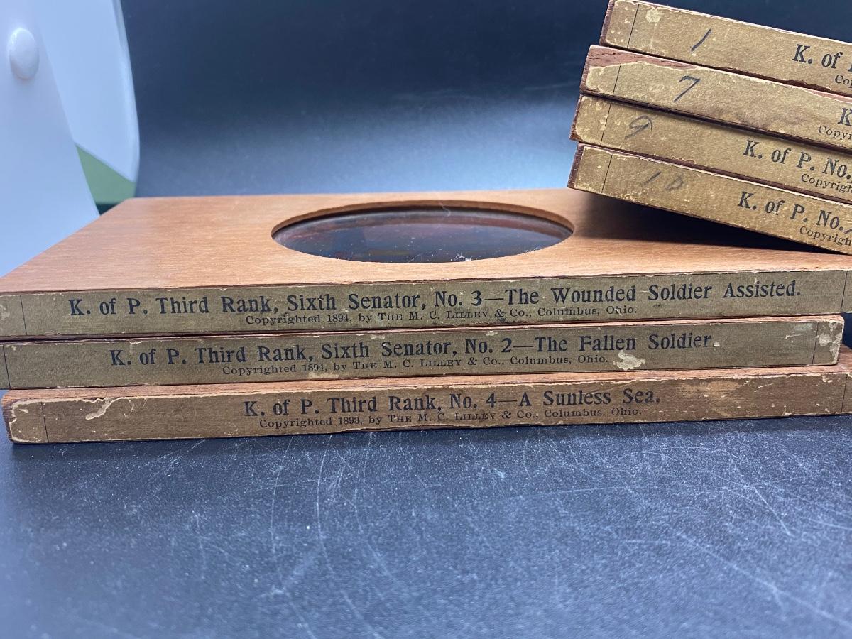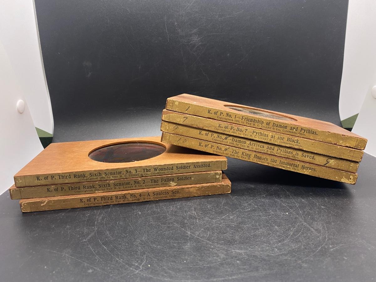 Lot of Antique 19th Century M.C. Lilley Magic Lantern Projector Color Glass Slides