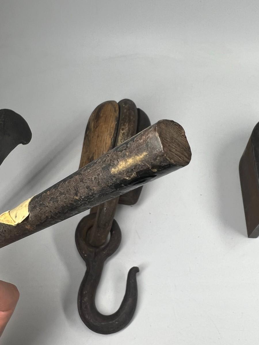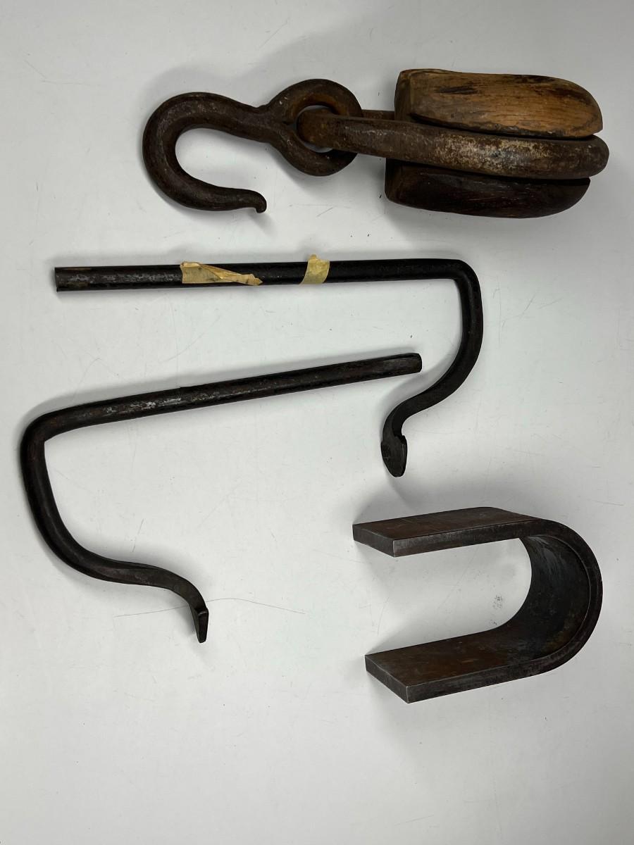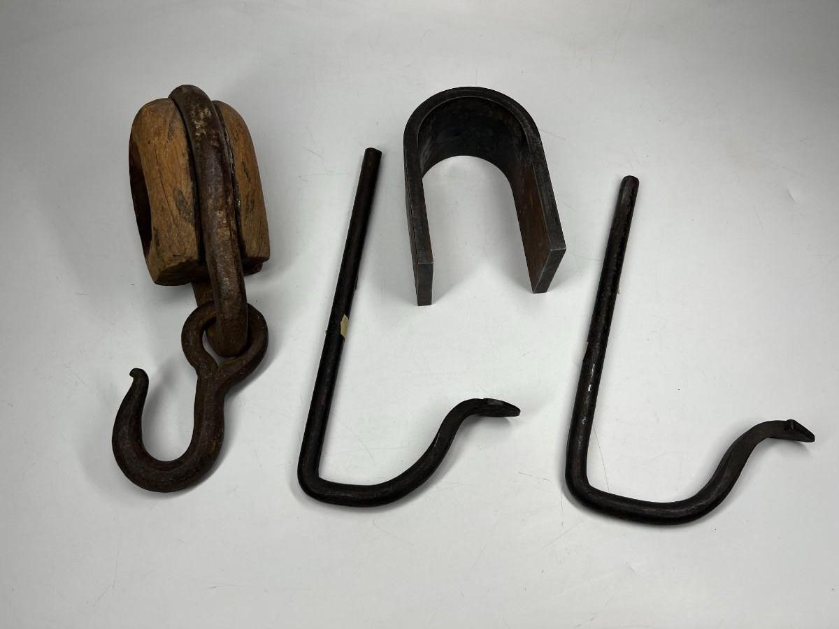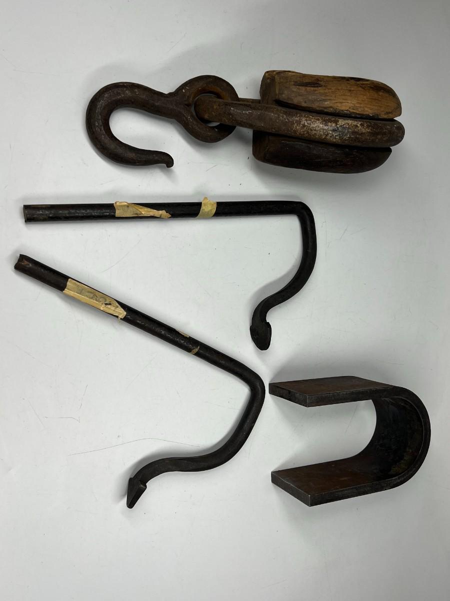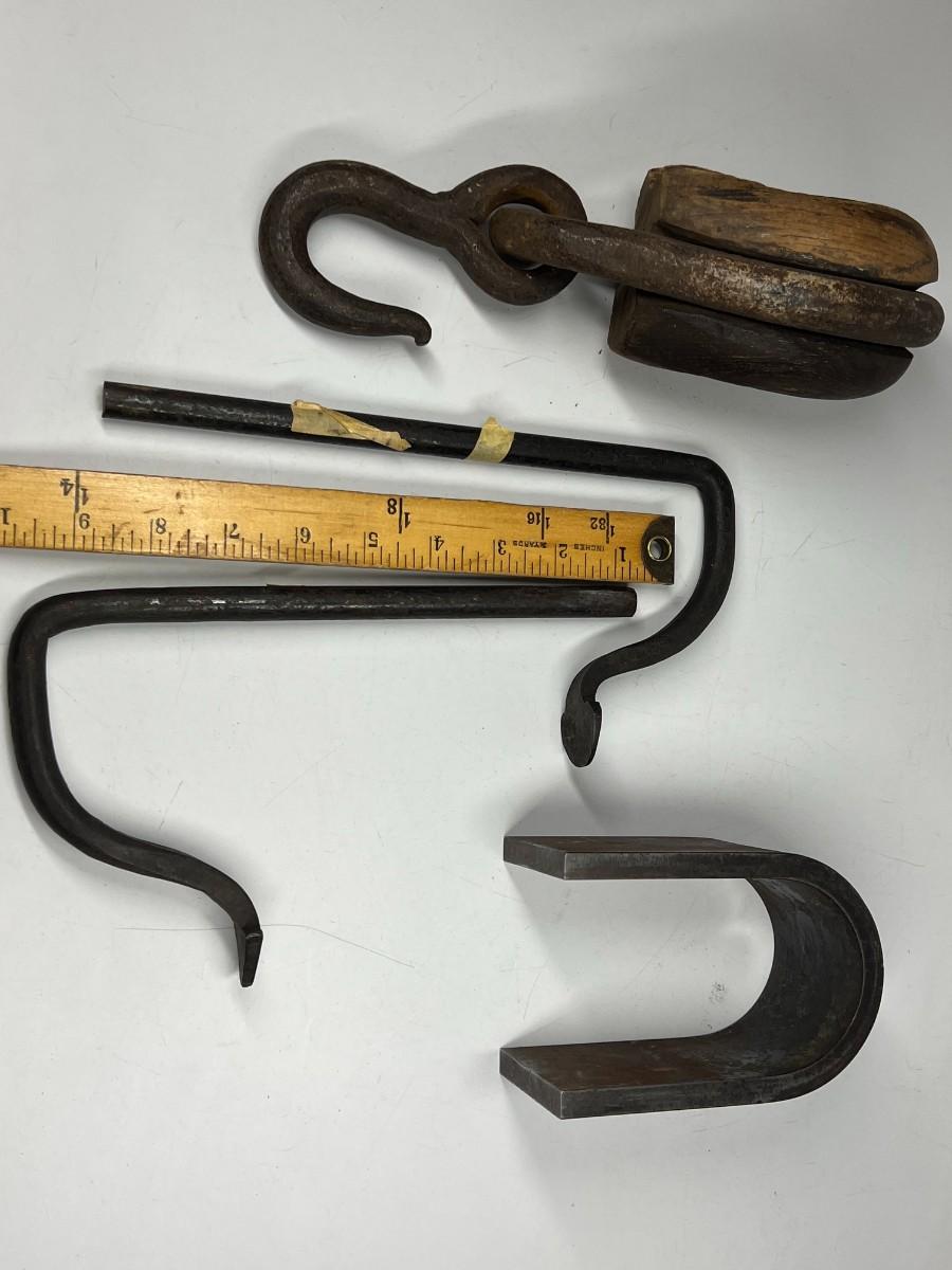 Lot of Antique 19th Century Deadeye Nautical Hook, Magnetic Tool, and Various Head Hooks