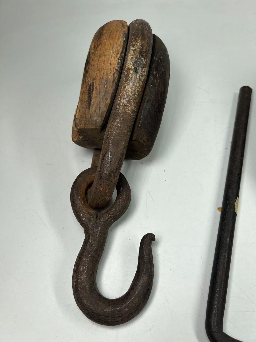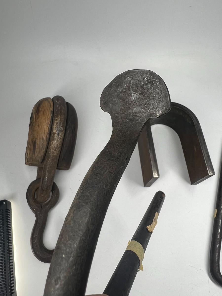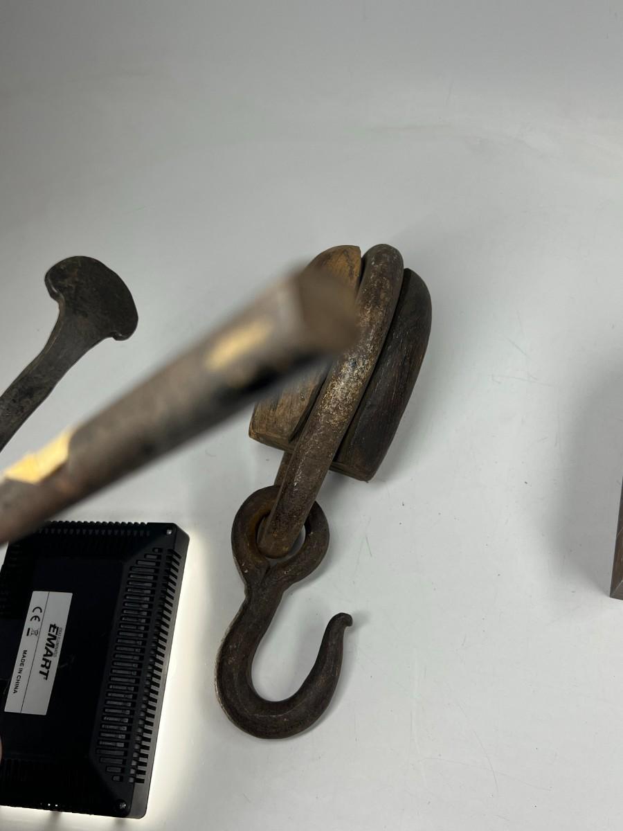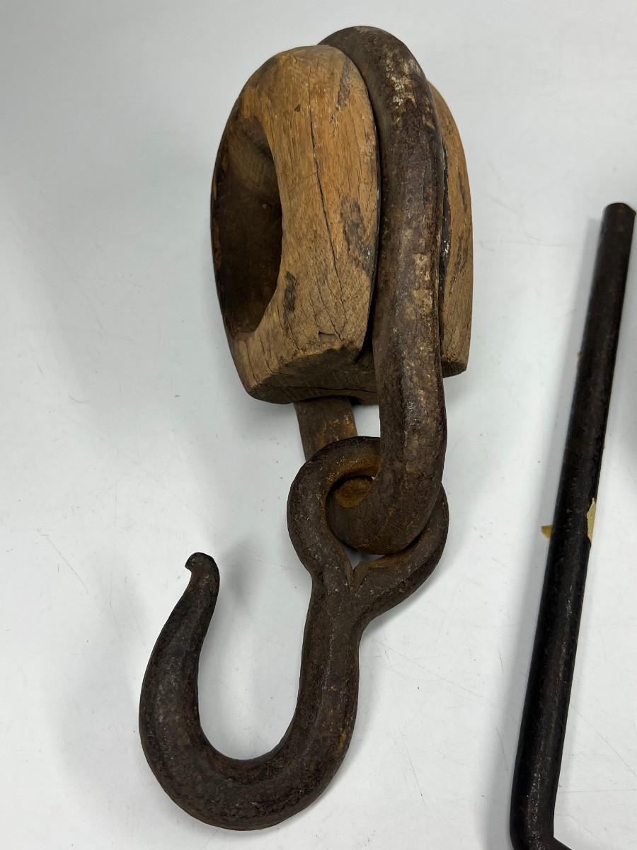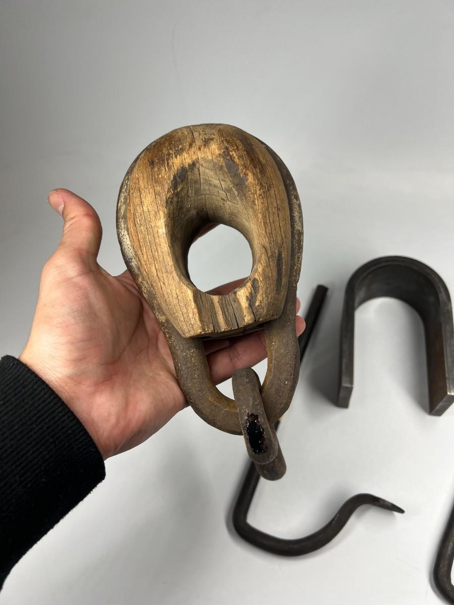 Lot of Antique 19th Century Deadeye Nautical Hook, Magnetic Tool, and Various Head Hooks