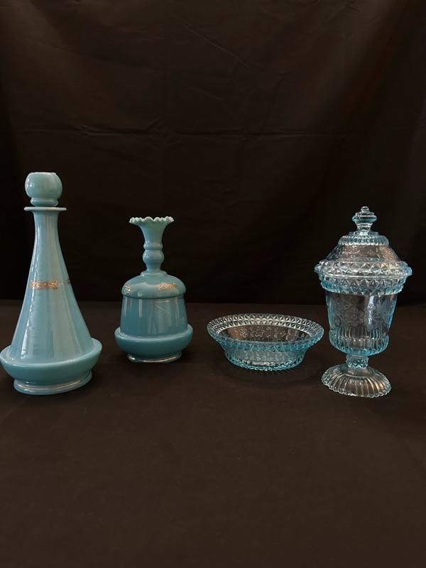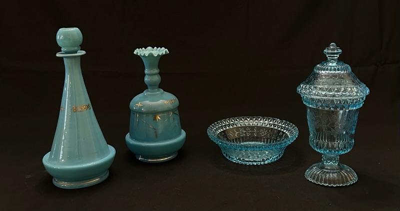 Antique and Vintage Blue Glassware. Please examine photos carefully.