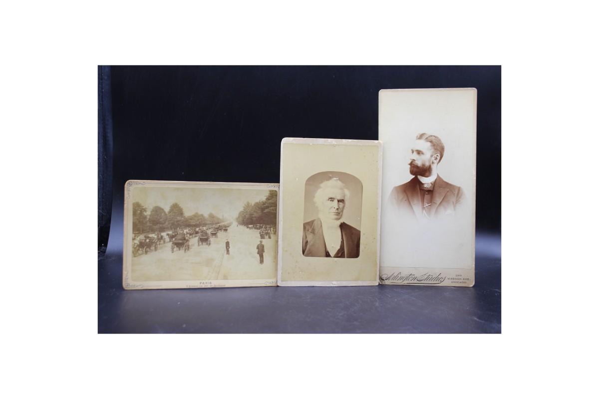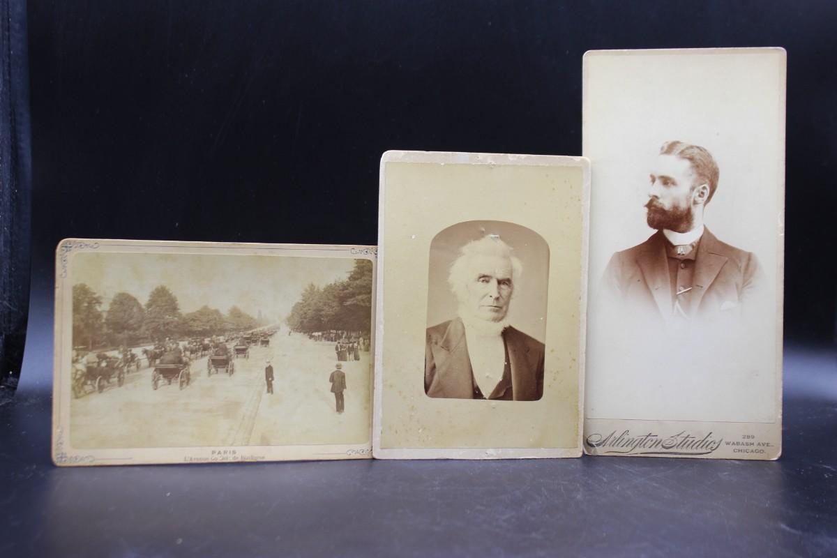 Lot of Antique Cabinet Card Photographs Art Gallery, Chicago Photo Studio, and Paris