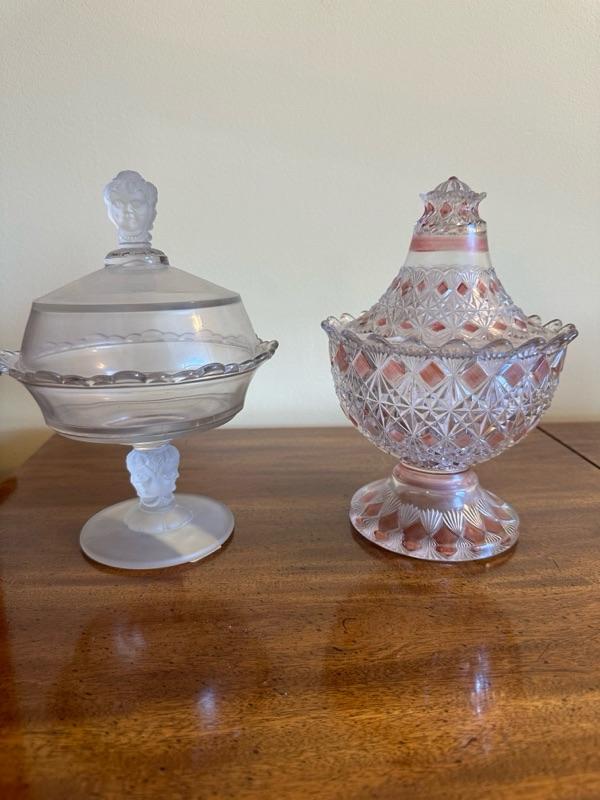 Lot of Vintage Candy Dishes and Small Bowls including a "Three face" compote. These are a perfect addition to any glass collection!