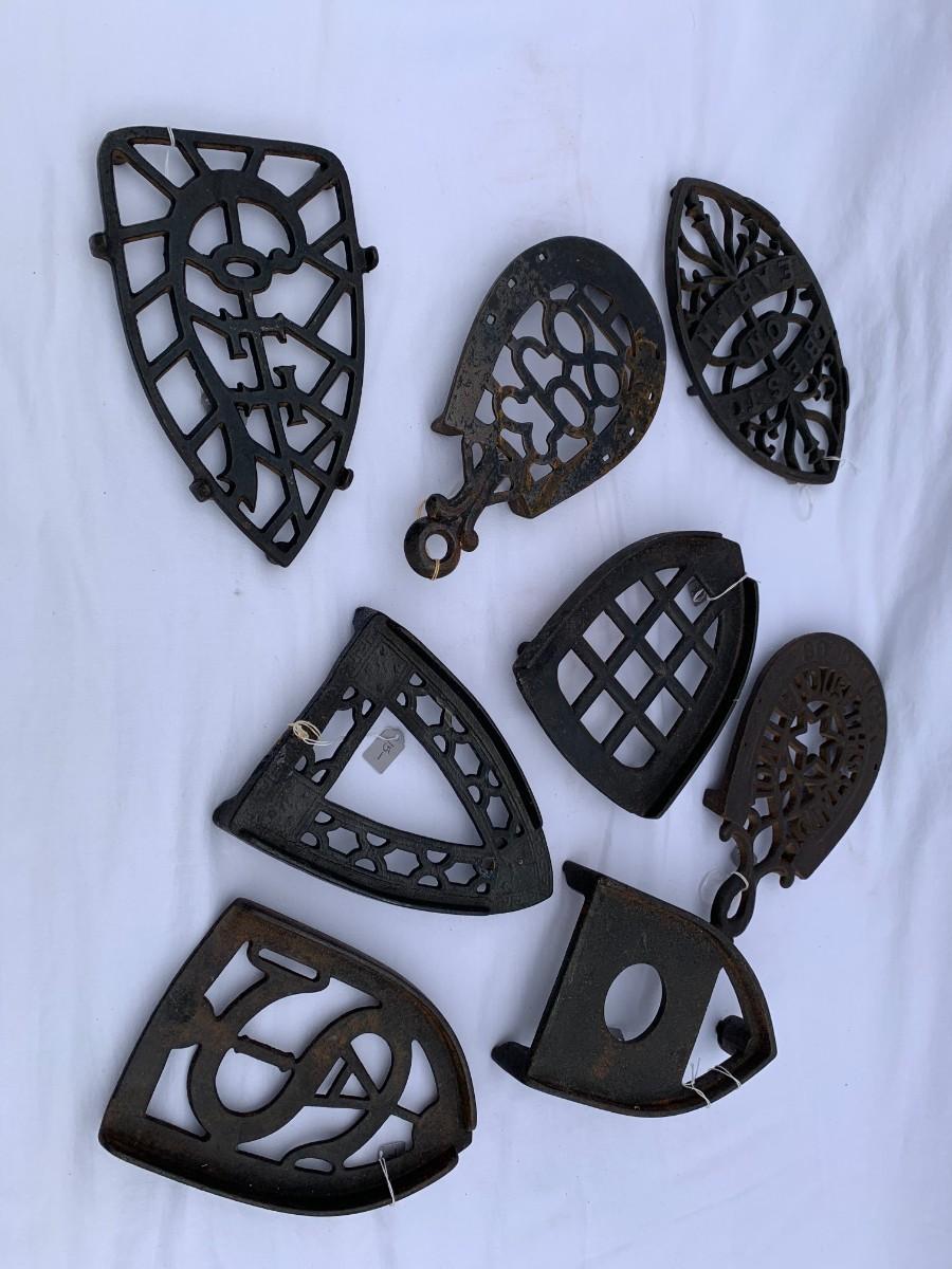 Lot of 7 antique cast iron trivets.