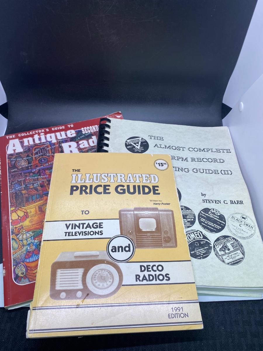 Lot of Antique Collectors Price Guide Books on Vintage Televisions, Radios, & Records, there is no signficnat tears or rips to the pages and is in good condition. Check pictures for more details and for sizing.