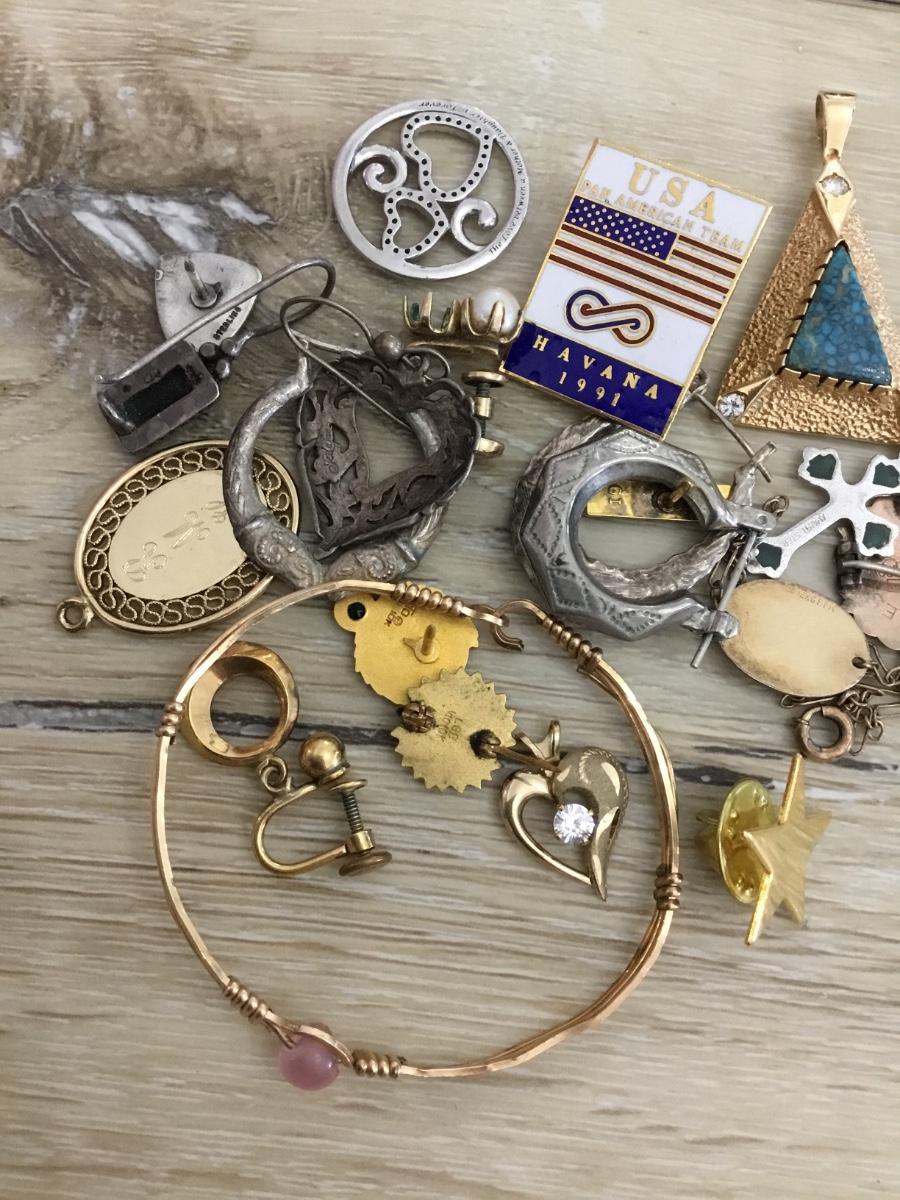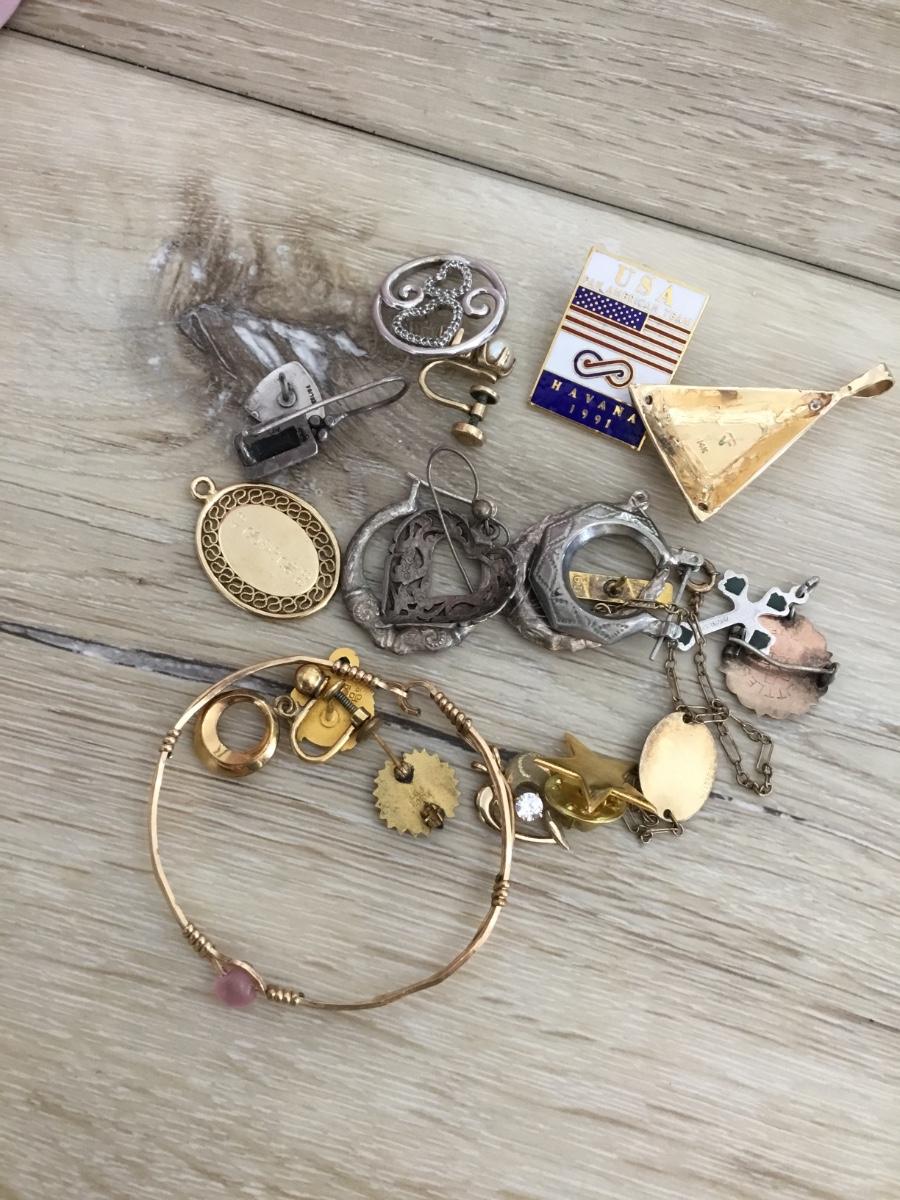 lot of antique junk, silver & filled pin and pendant &sterling silver pendants