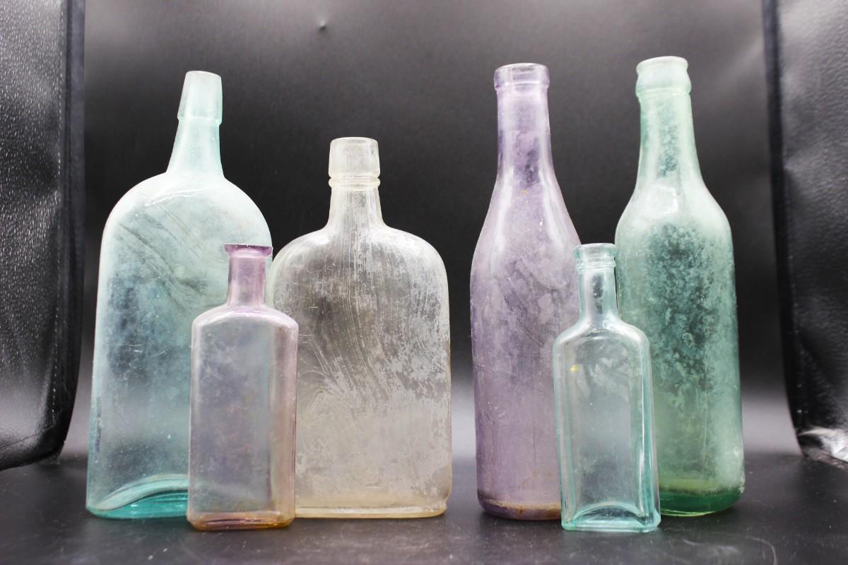 Lot of Antique Multi Colored Glass Bottles and Vials