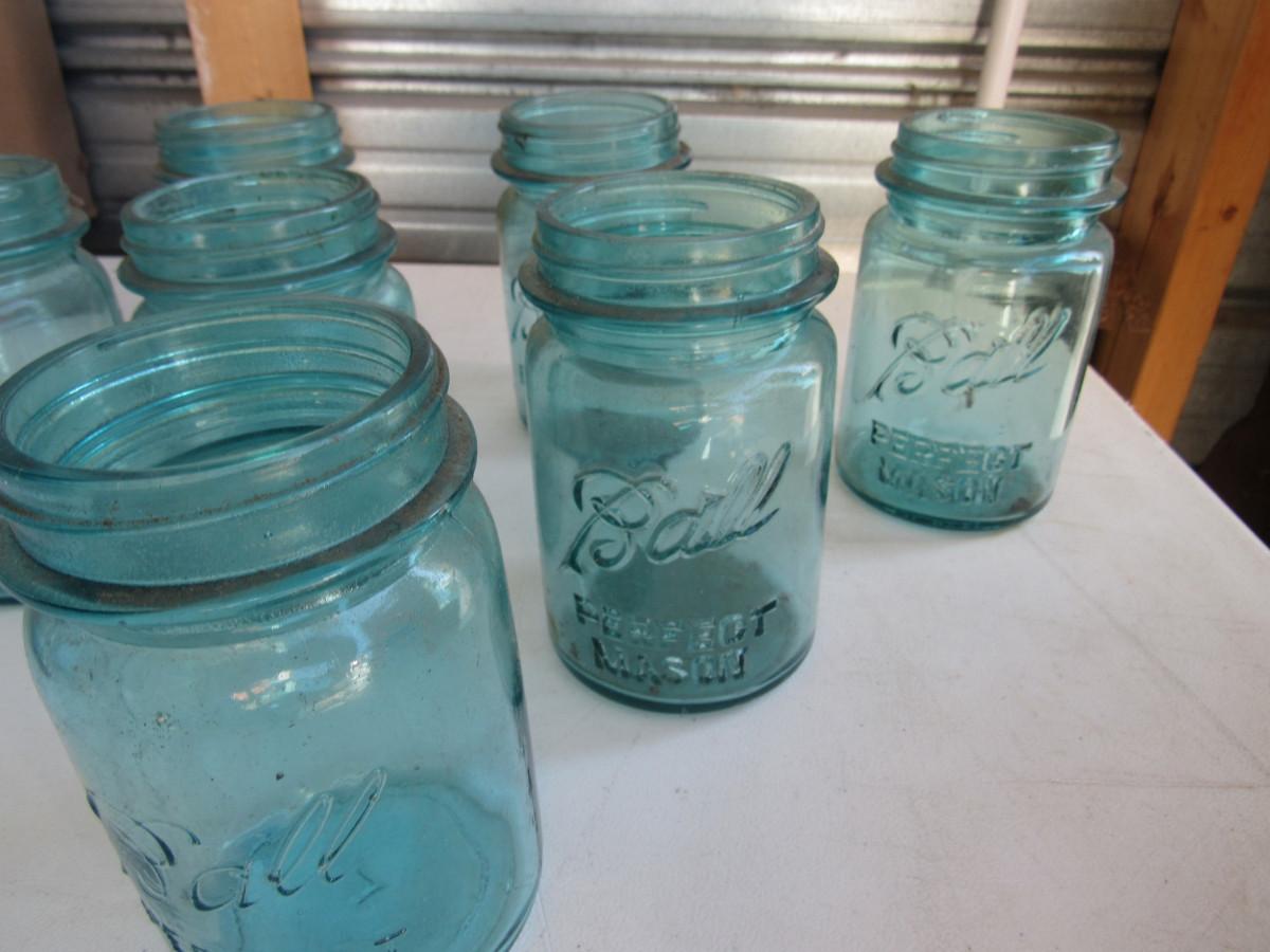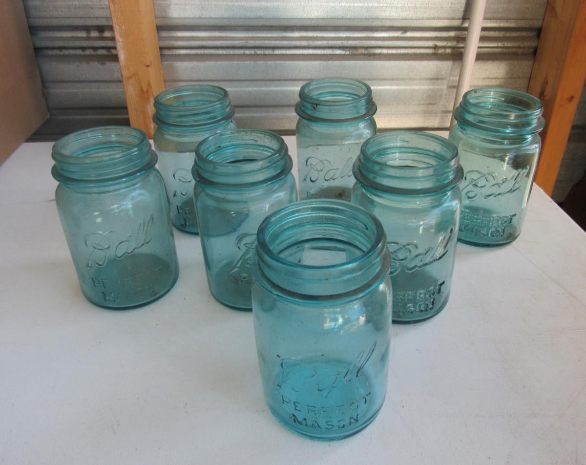 Lot of Antique Teal Canning Jars