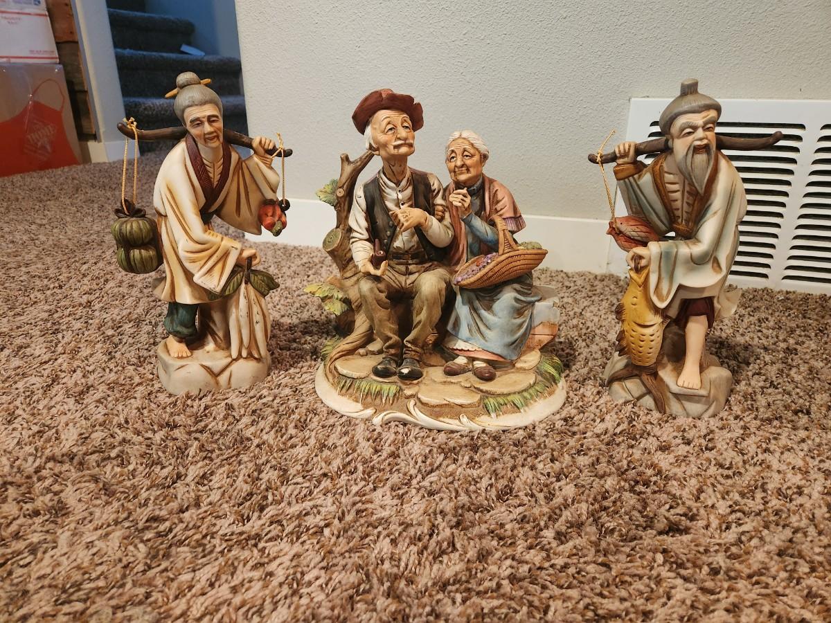 Lot of Antique Vintage Chinese Food Fruit Fish Peddlers & Old Couple Ceramic