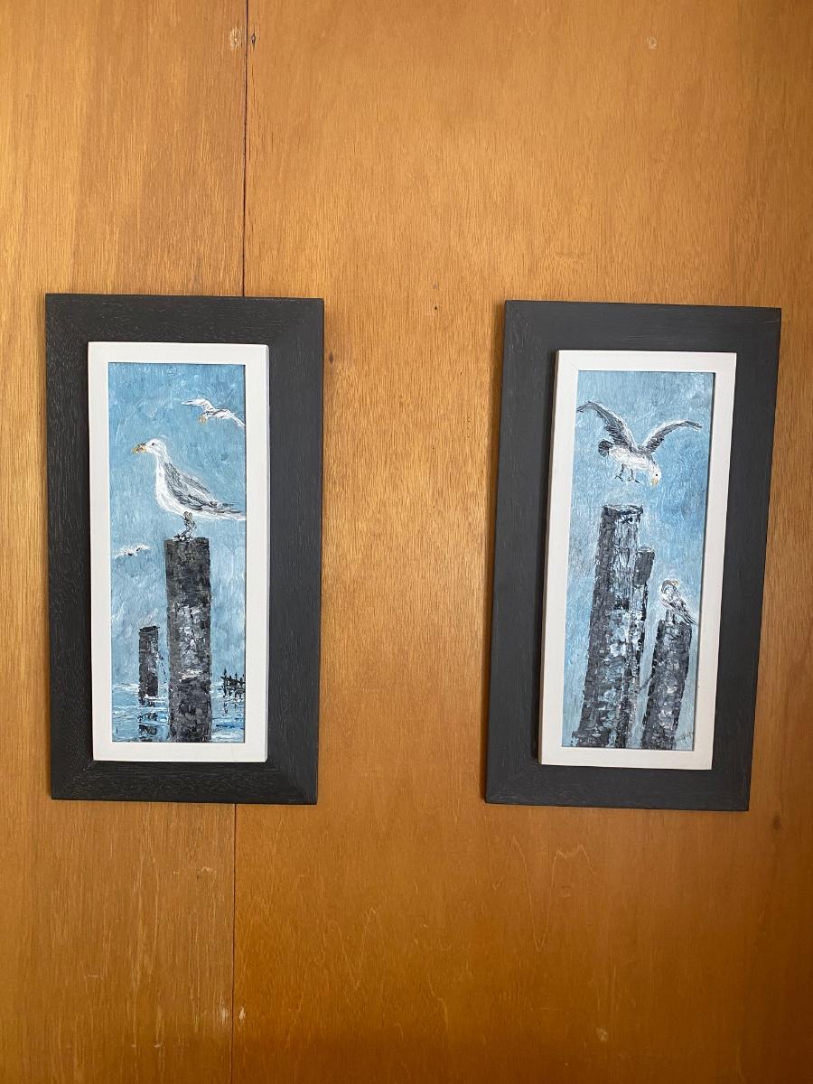 Oil paintings are 21x11. Watercolor painting is 13x10.