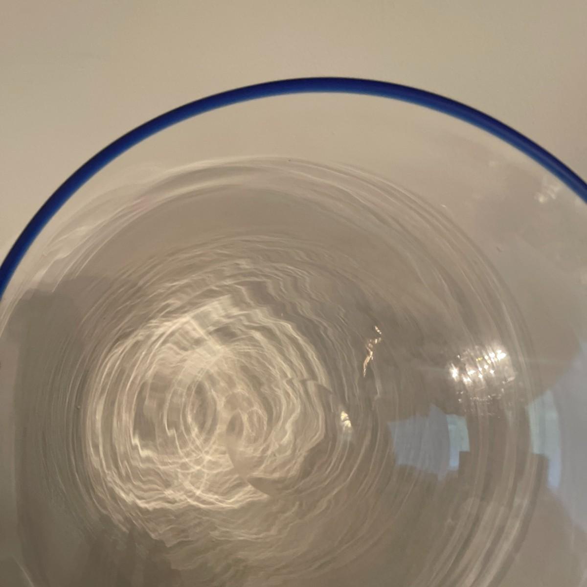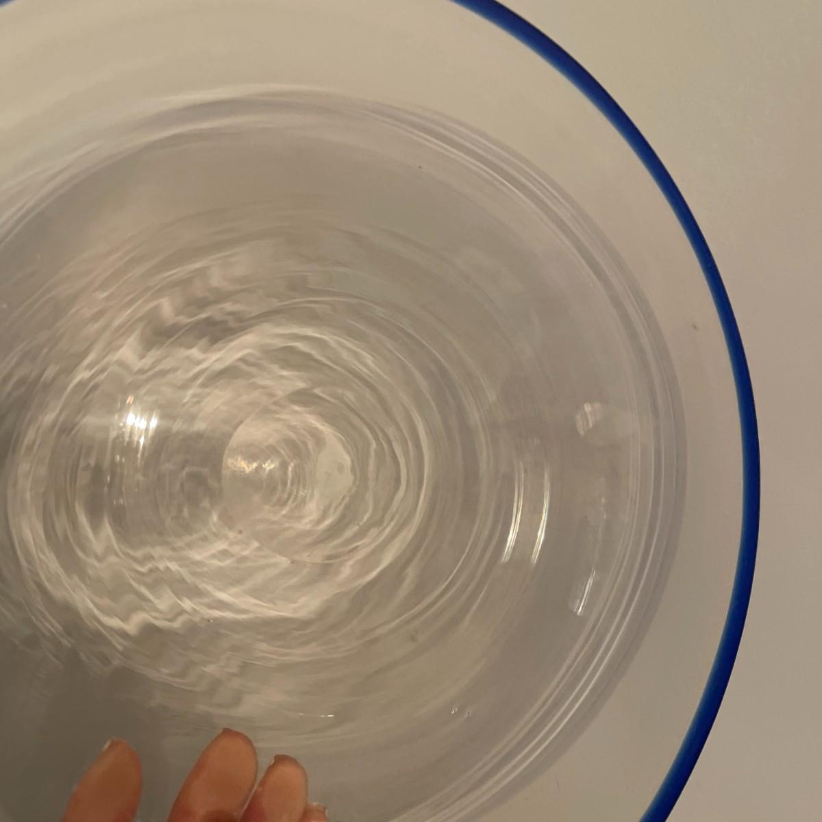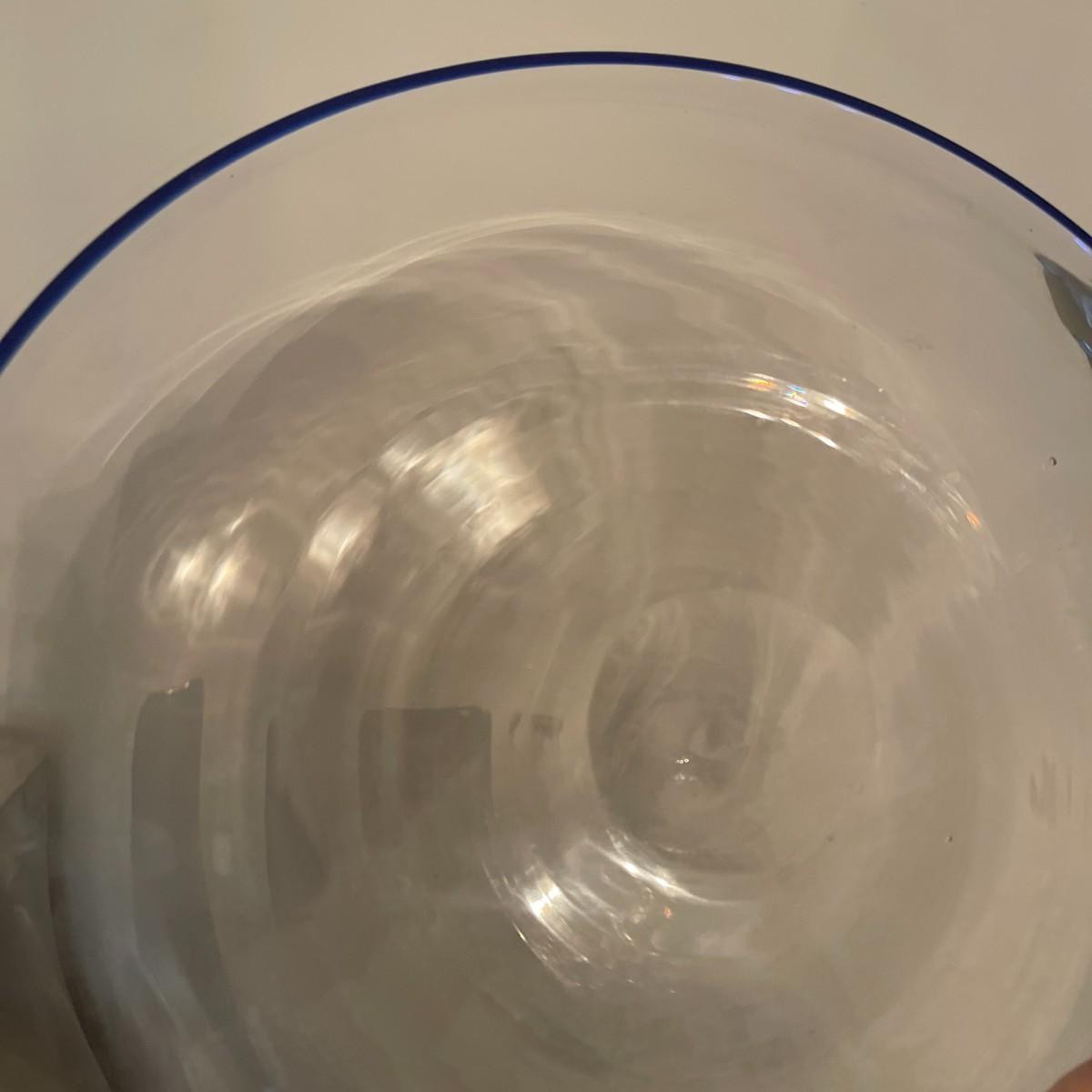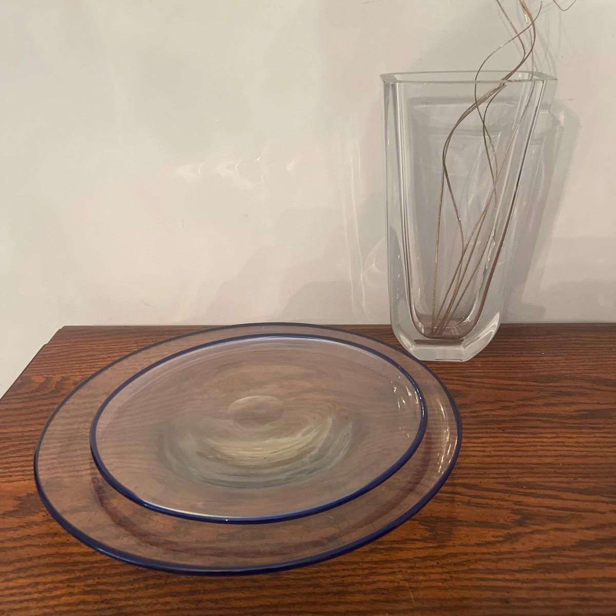 Lot of Art Glass Platters & Orrefors Vase. The clear platters are rimmed in blue. Vase is signed but it was hard to get a photo of the signature. Bottom has a lot of scratching but vase is in otherwise excellent condition, as are the platters.