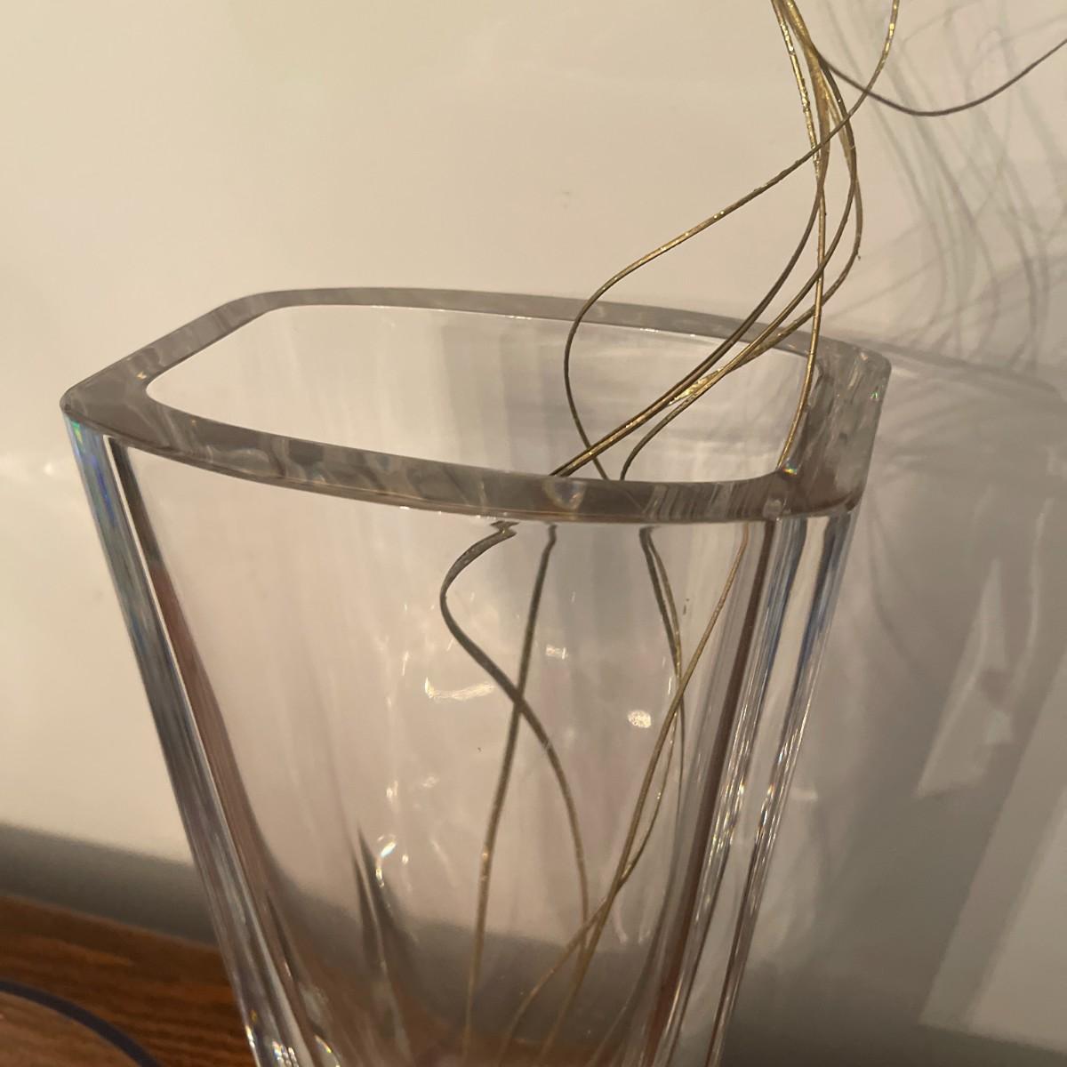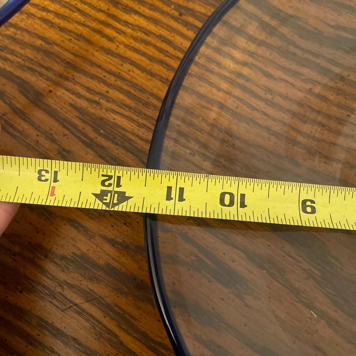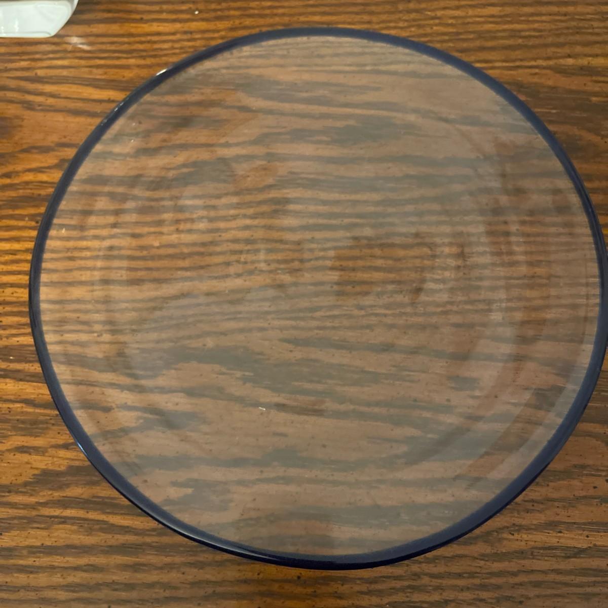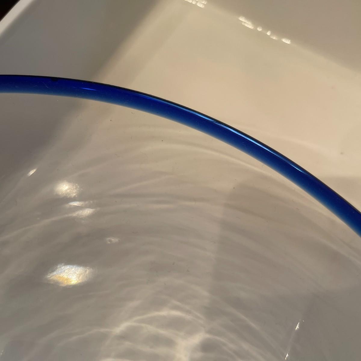Lot of Art Glass Platters & Orrefors Vase. The clear platters are rimmed in blue. Vase is signed but it was hard to get a photo of the signature. Bottom has a lot of scratching but vase is in otherwise excellent condition, as are the platters.