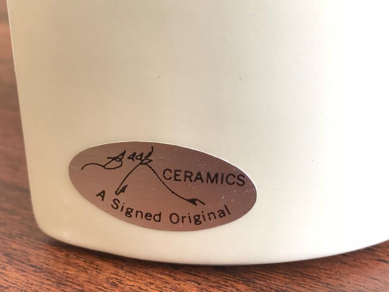 -Serpentine ceramic vase with hand painted cherry blossoms. Baatz signed original. Signed on front.