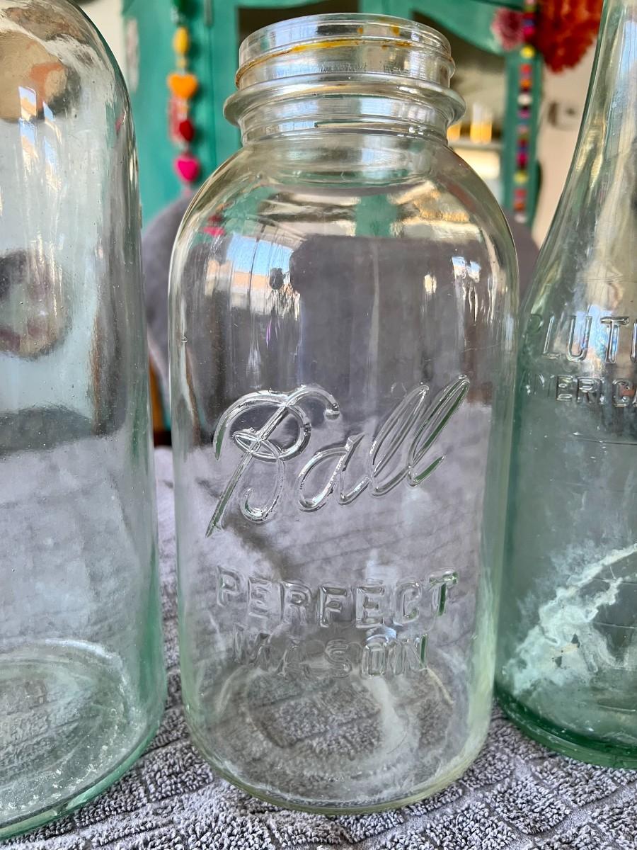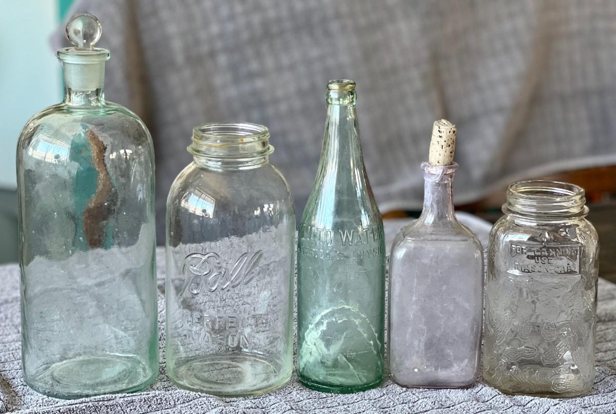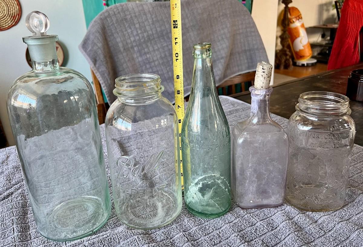Lot of Assorted Antique Vintage Bottles and Jars Ball Pluto Water Golden West Peanut Butter
