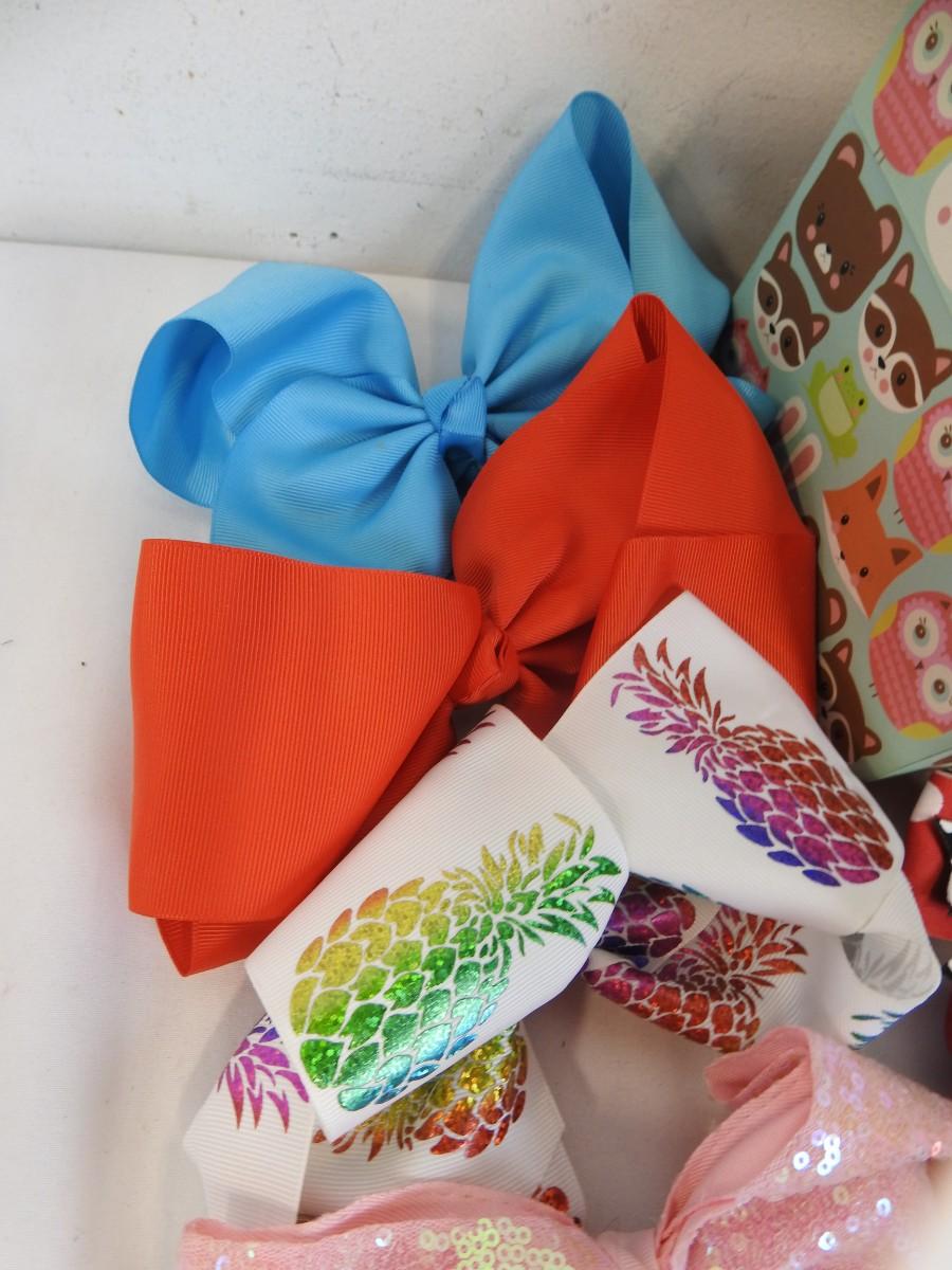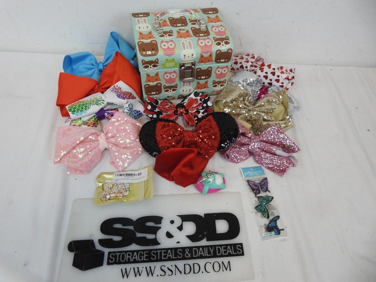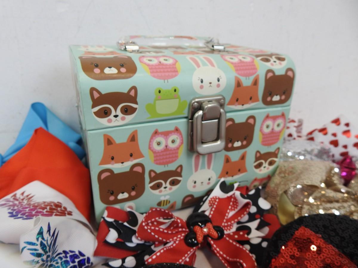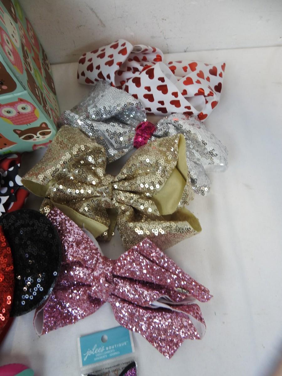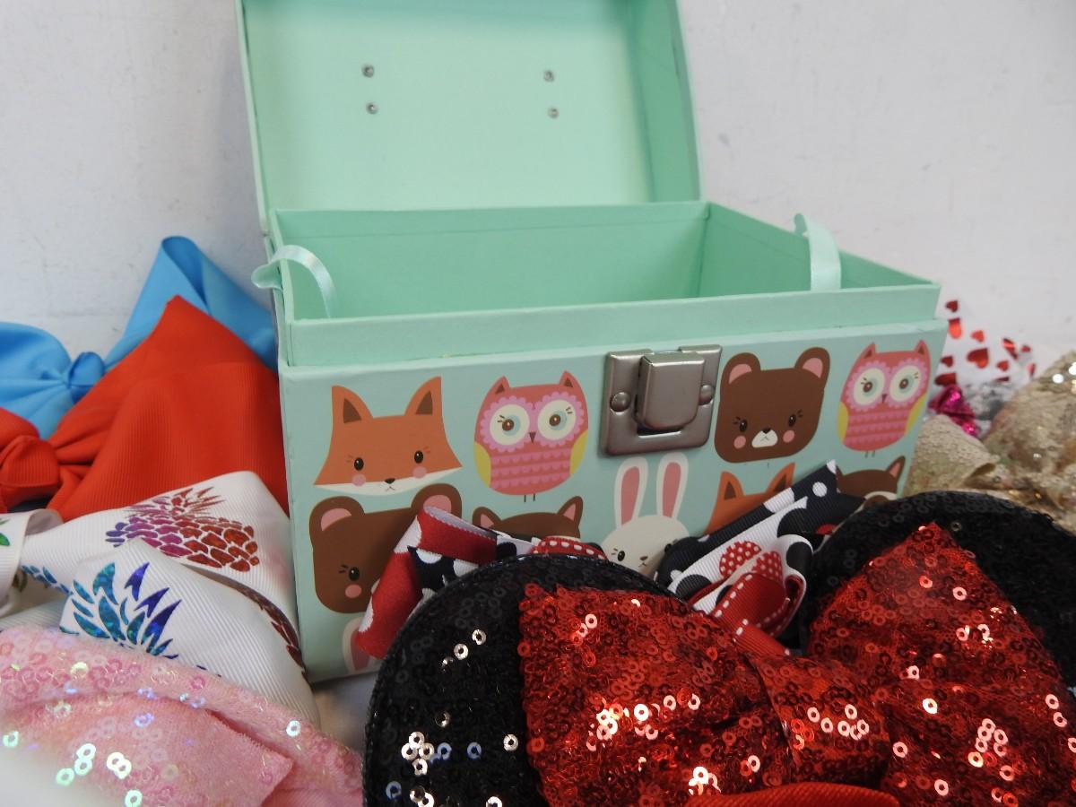 Lot of Assorted Bows, Teal Box with Animal Faces
