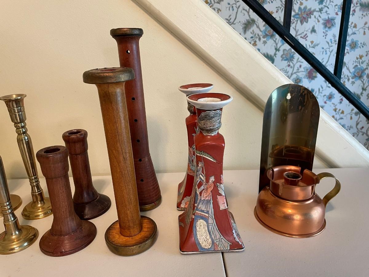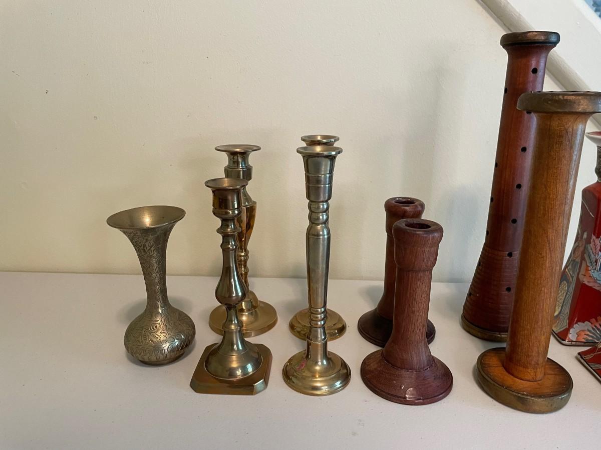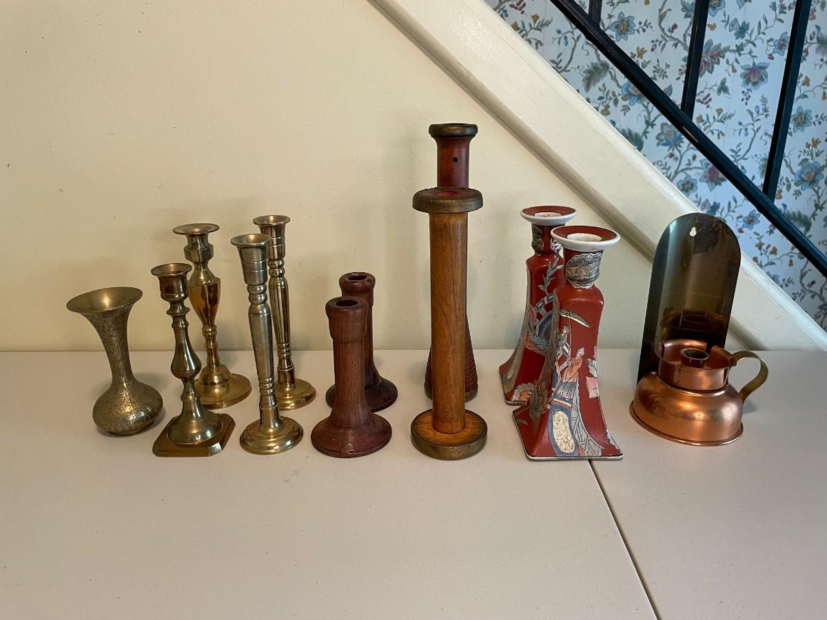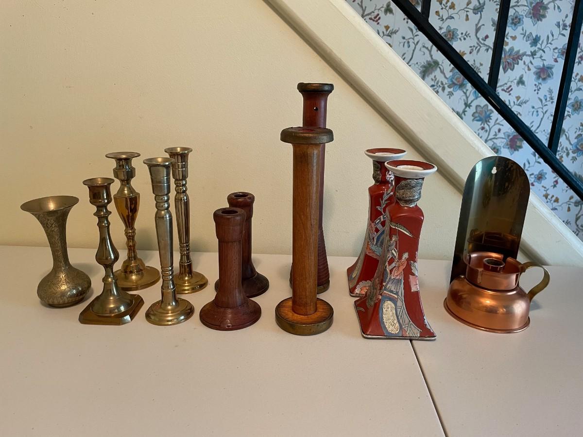 1 copper, 5 brass, a set of seramic , set of wooden. 2 non set wooden