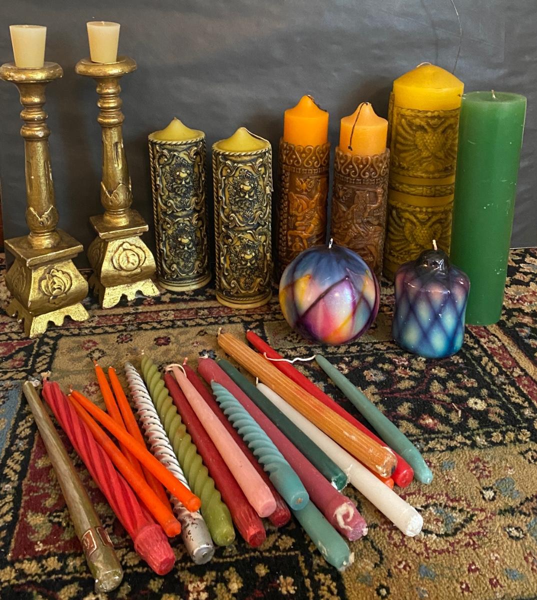 Lot of assorted candles and candlesticks