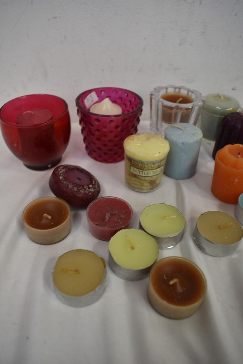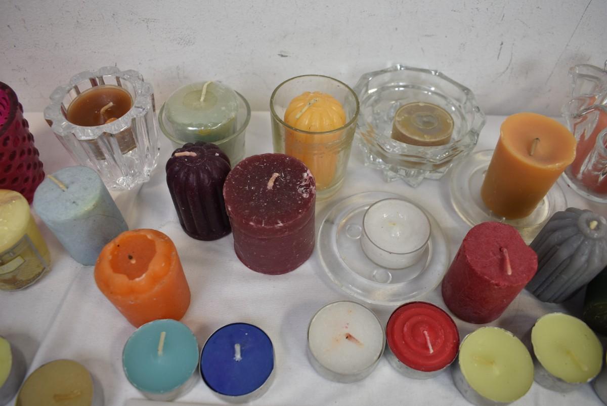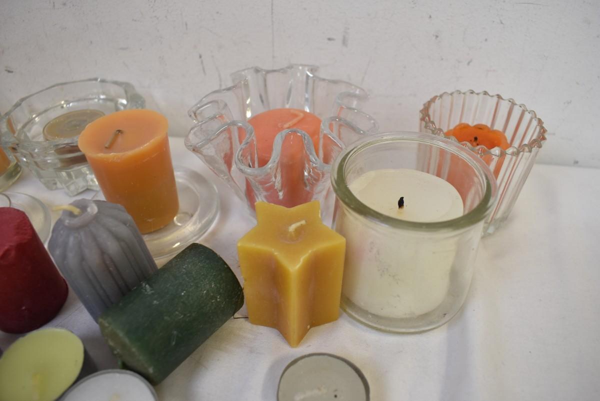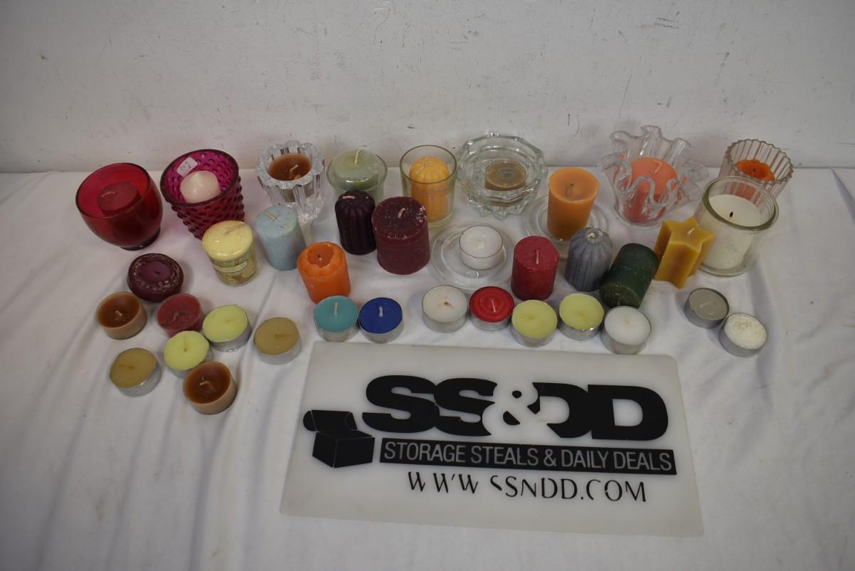 Lot of Assorted Candles, Assorted Sizes, votives, Candle Holders