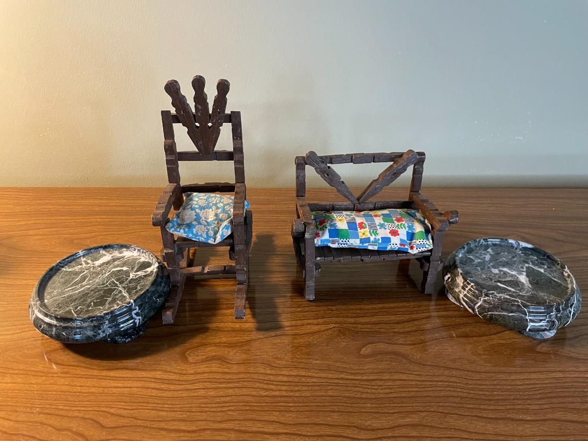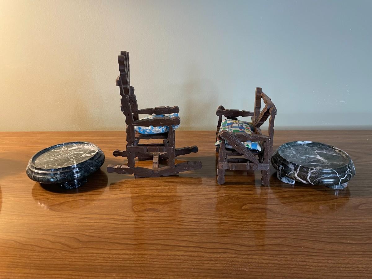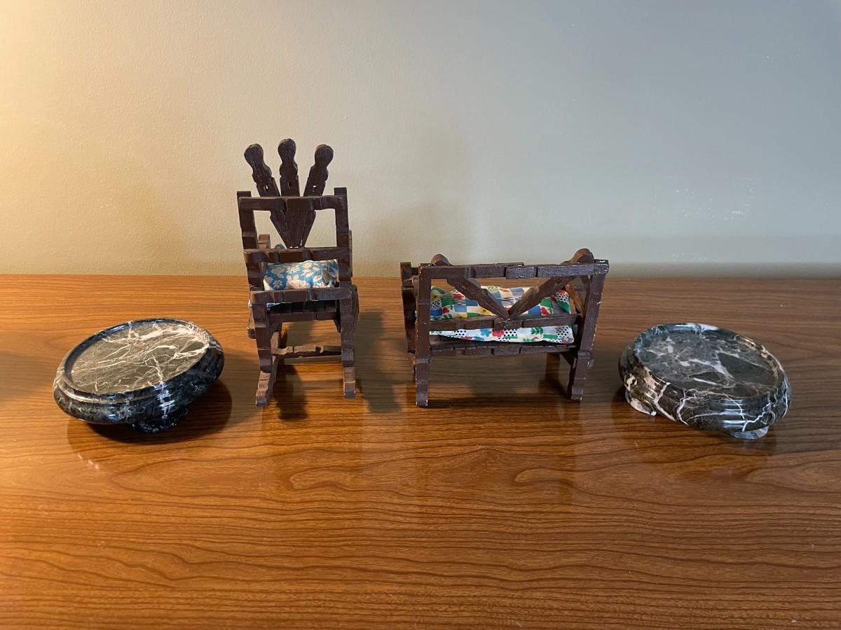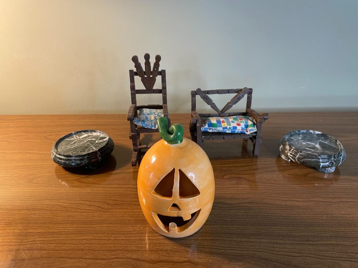 Lot of Assorted Ceramic, Wooden Items, Small Marble Like Plant Stands