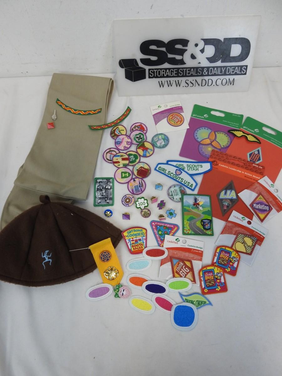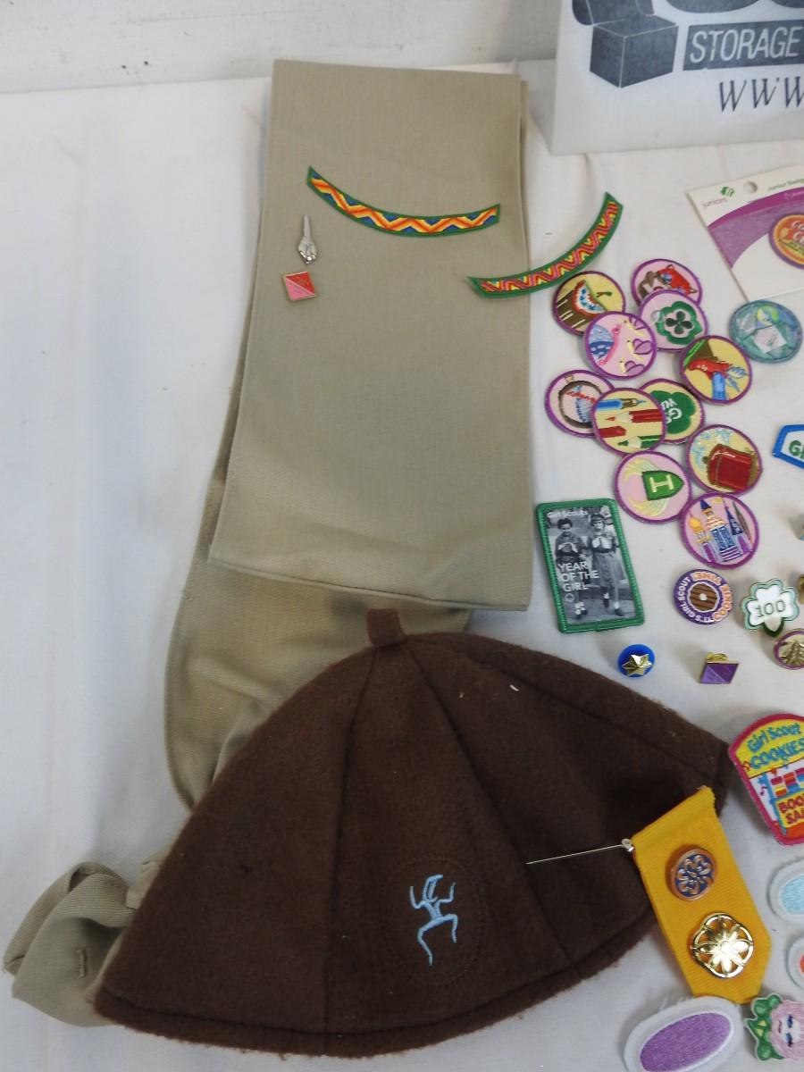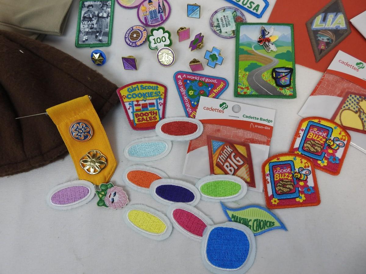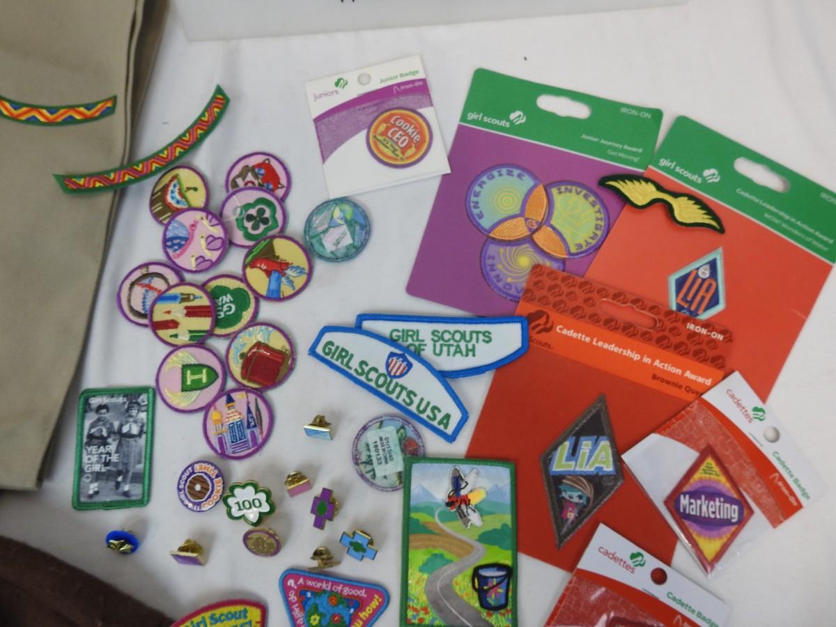Lot of Assorted Girl Scout Pins, Badges, and Sash