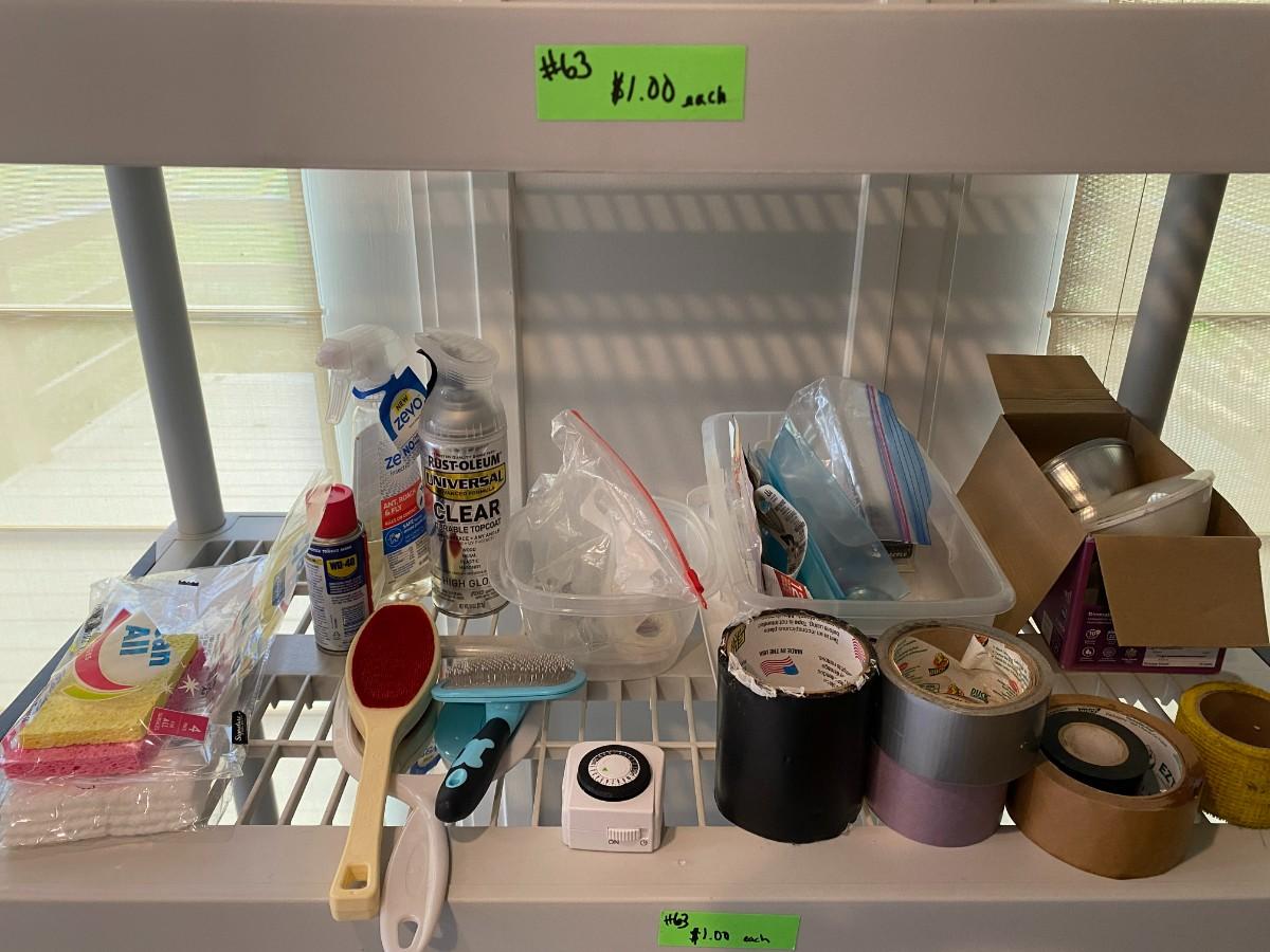 Various everyday use items. Please see photo for details. Ziplock contains assorted batteries and screws.