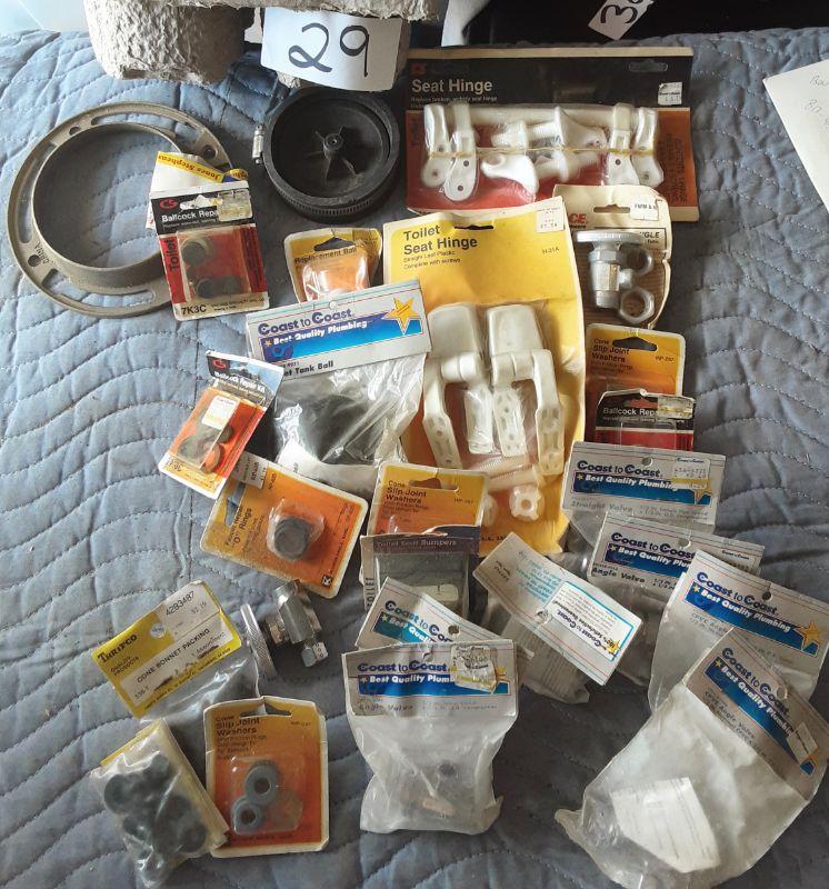 Lot 29 - Assorted plumbing parts, brass flange, valves, etc., orig. pkg