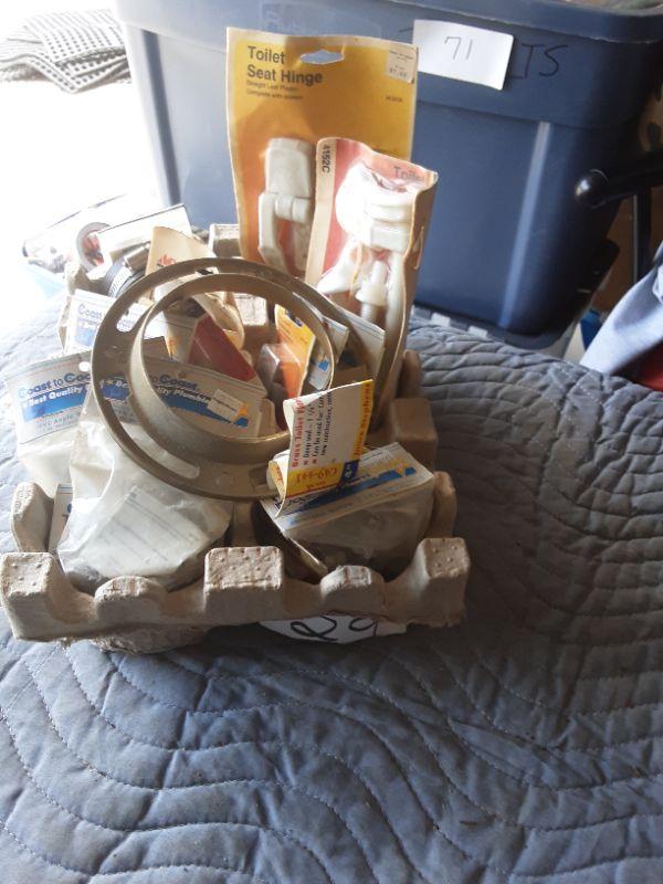 Lot of Assorted plumbing parts, brass flange, valves, angle valves, shutoff valve, washers, etc., orig. pkg