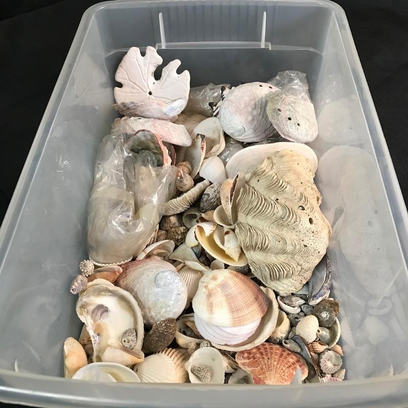 One large lot of assorted seashells. Shelves will vary in size, color, and condition.