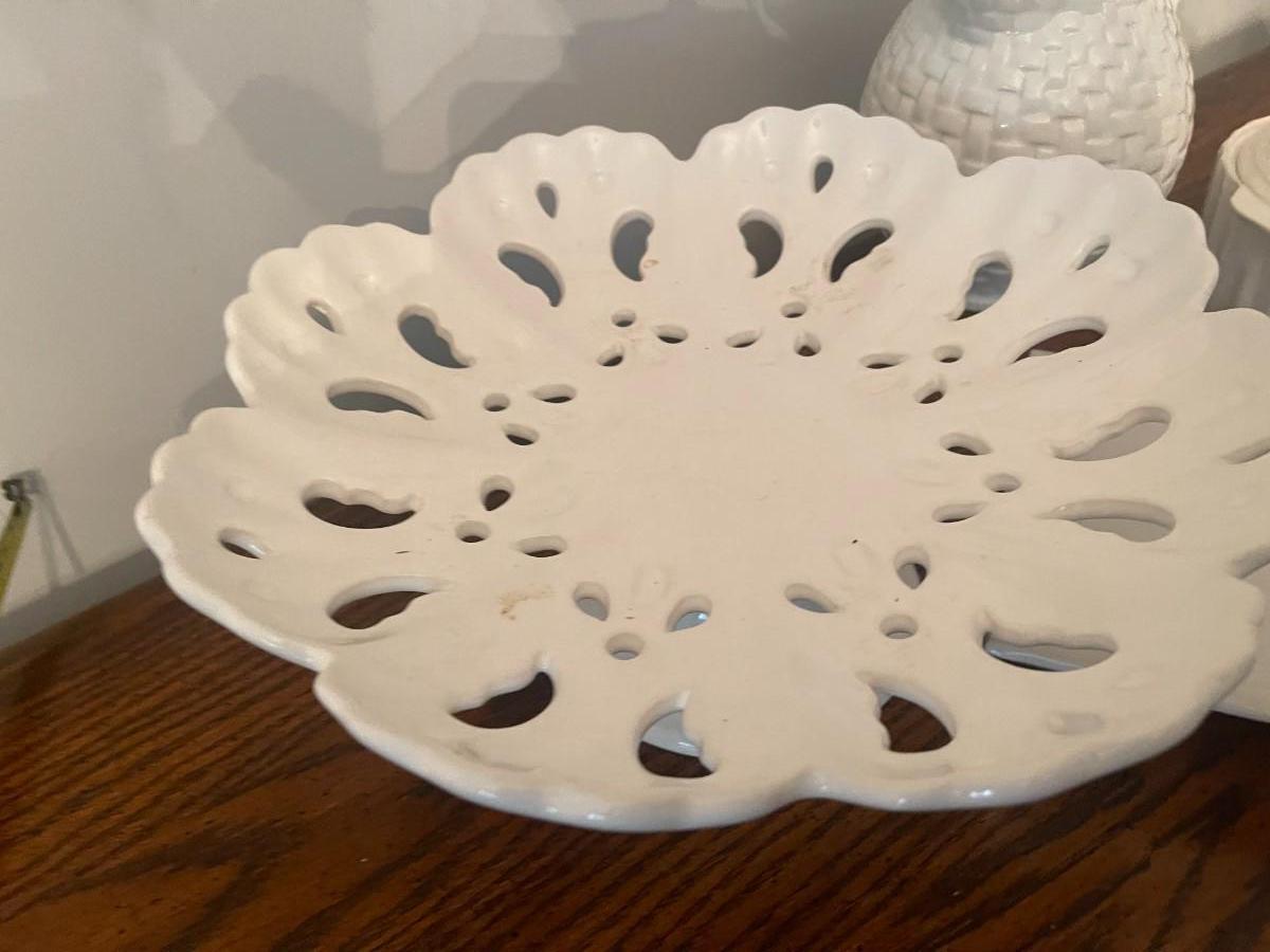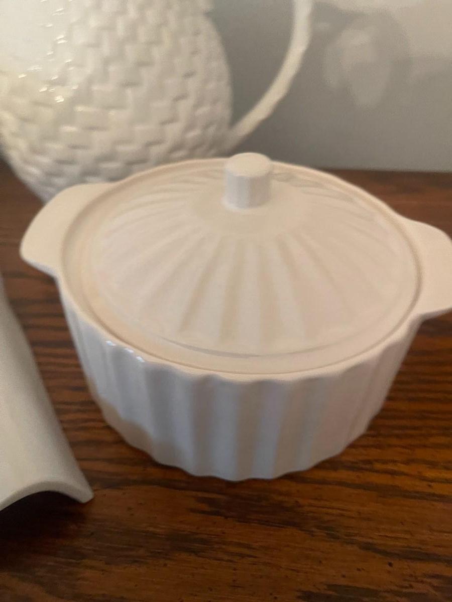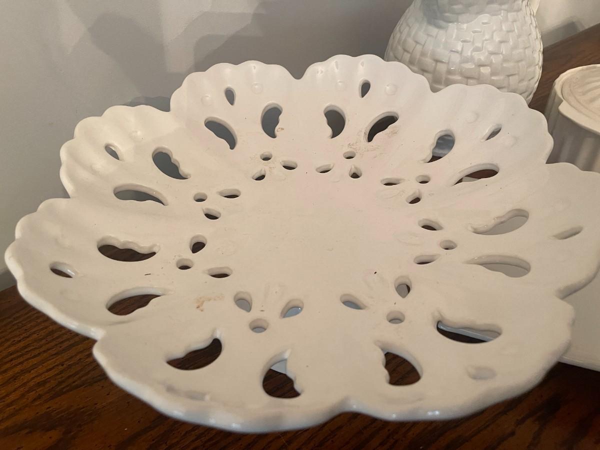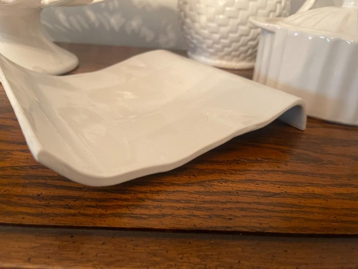 Lot of Assorted White Serving Dishes - Pitcher, Cake Plate, Bowl with Lid & Platter
