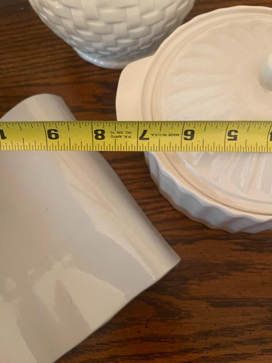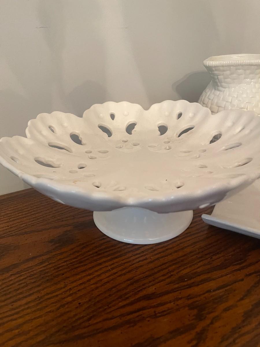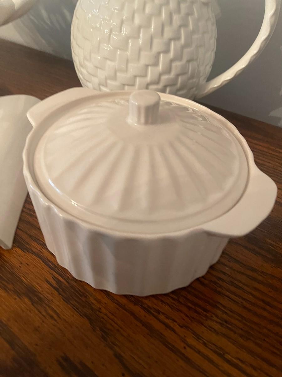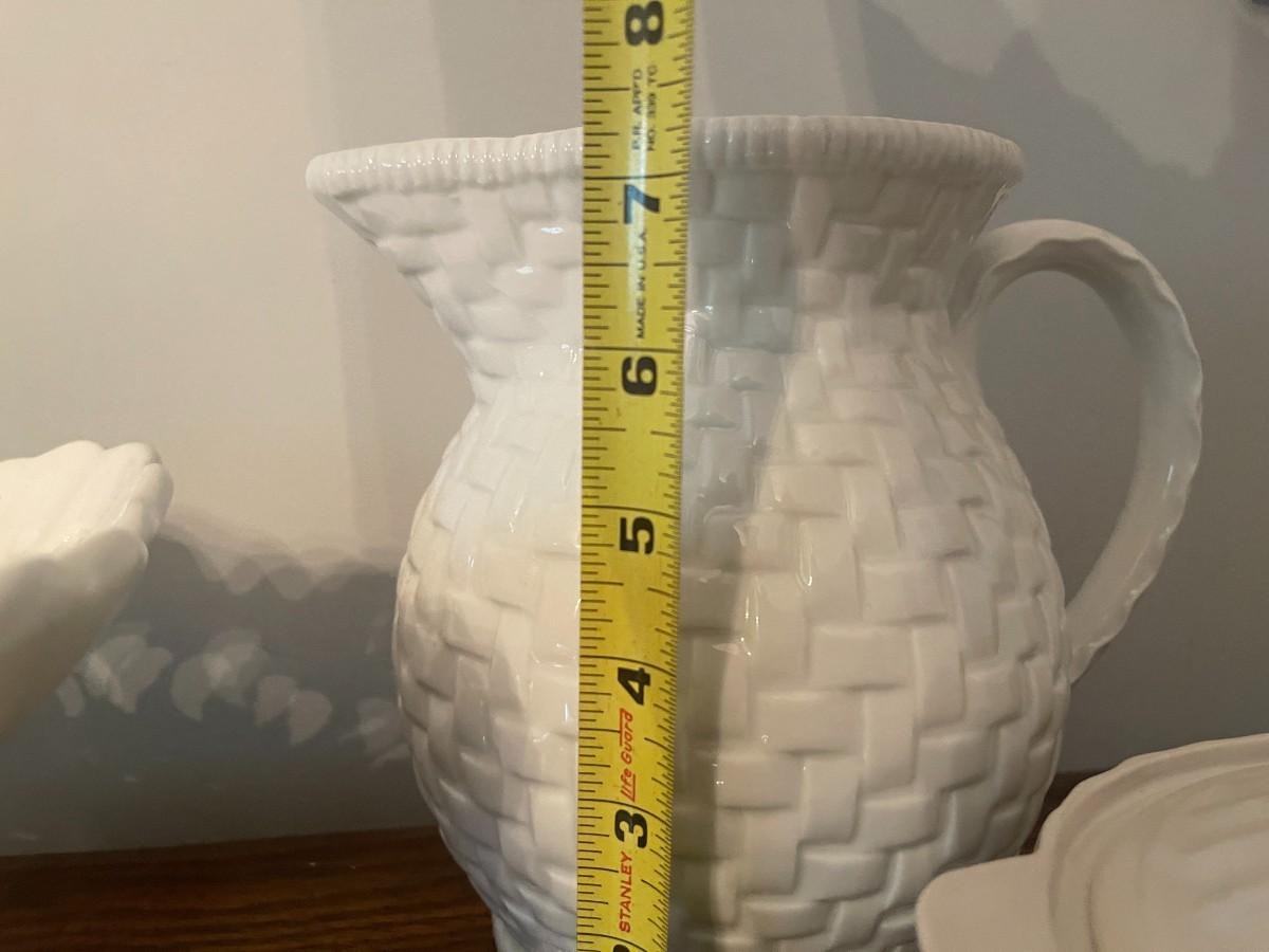Lot of Assorted White Serving Dishes - Pitcher, Cake Plate, Bowl with Lid & Platter