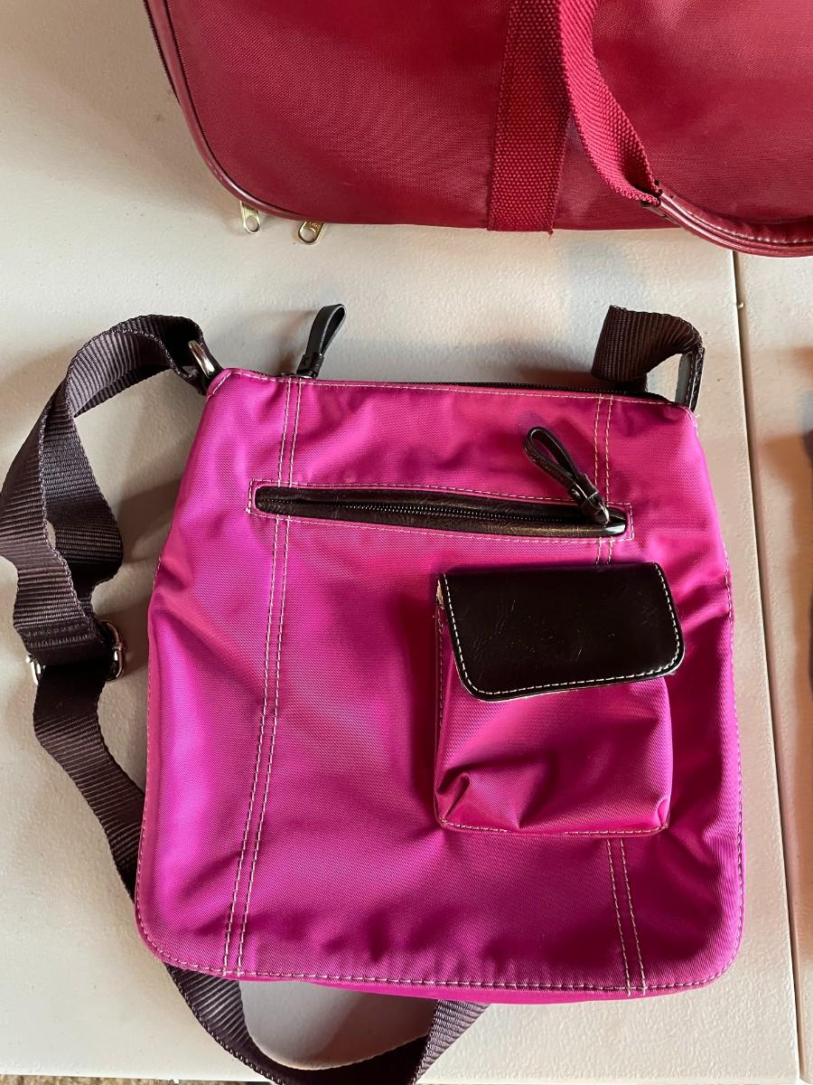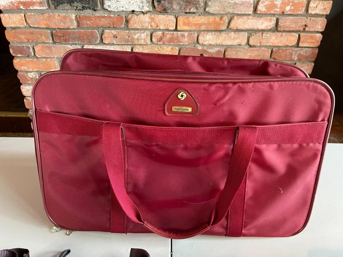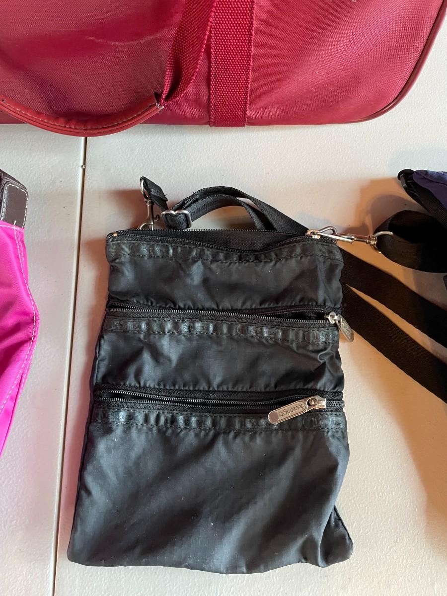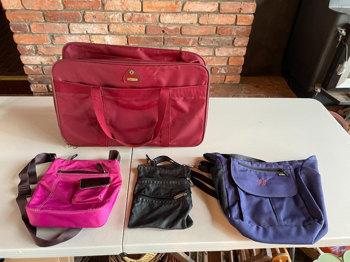 Samsonite laptop bag, L.L. Bean Crossbody and two additional small utility bags.