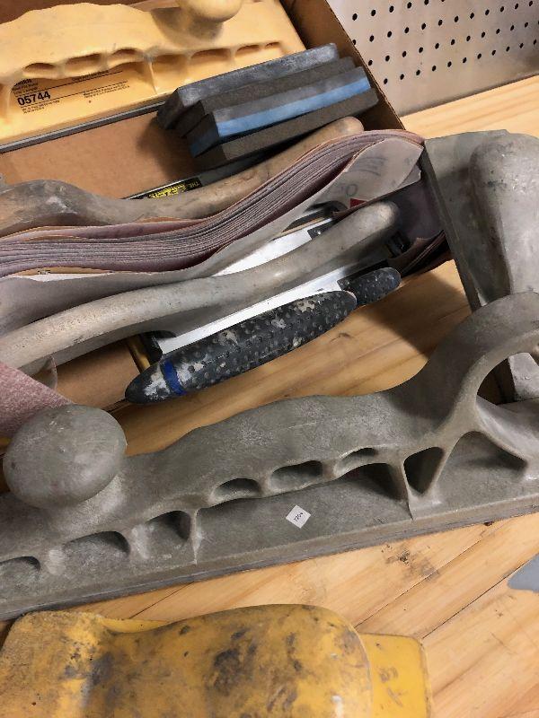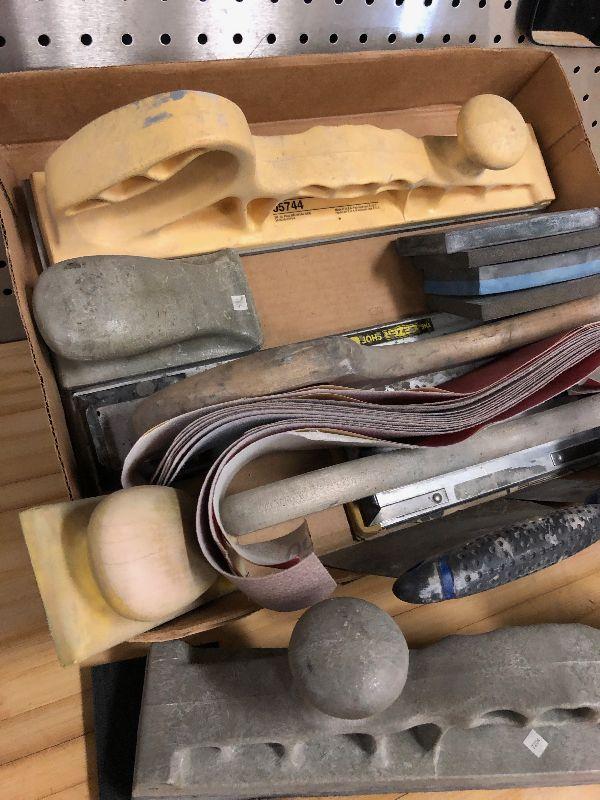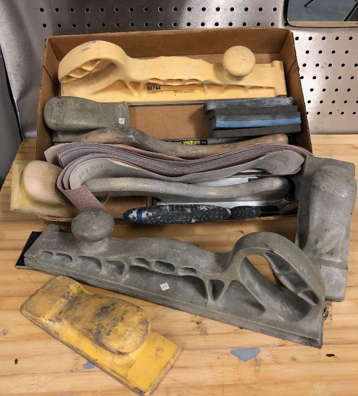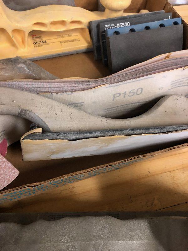 Lot of autobody sanding tools with sanding paper
