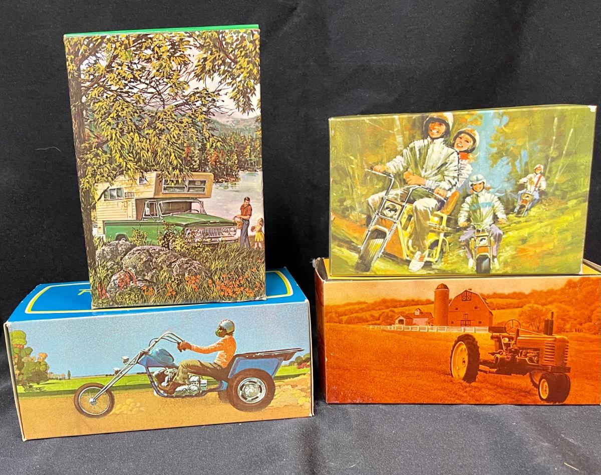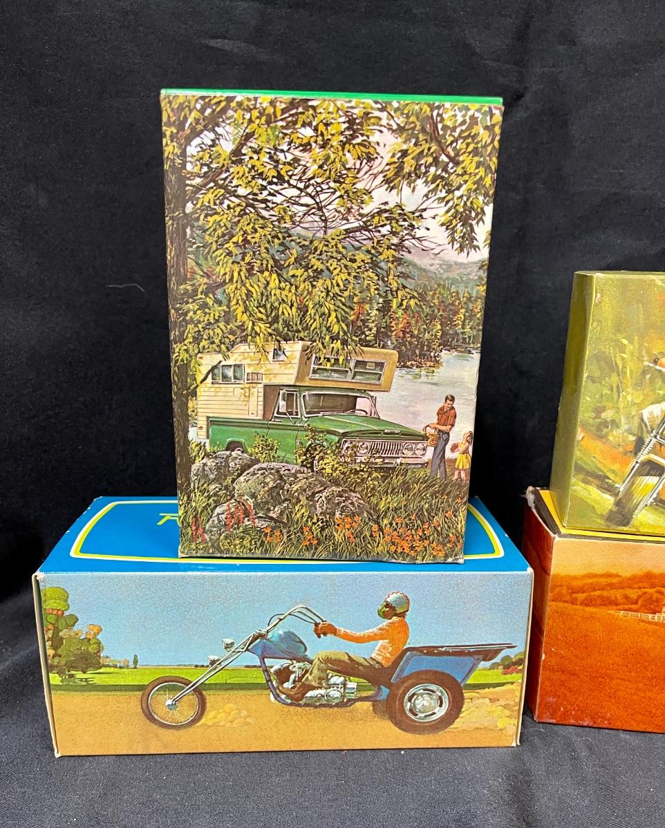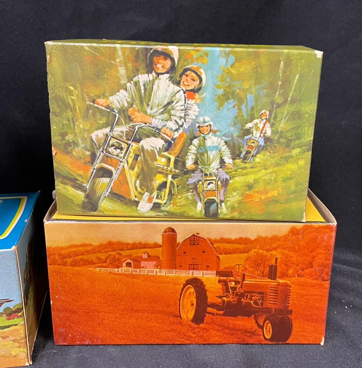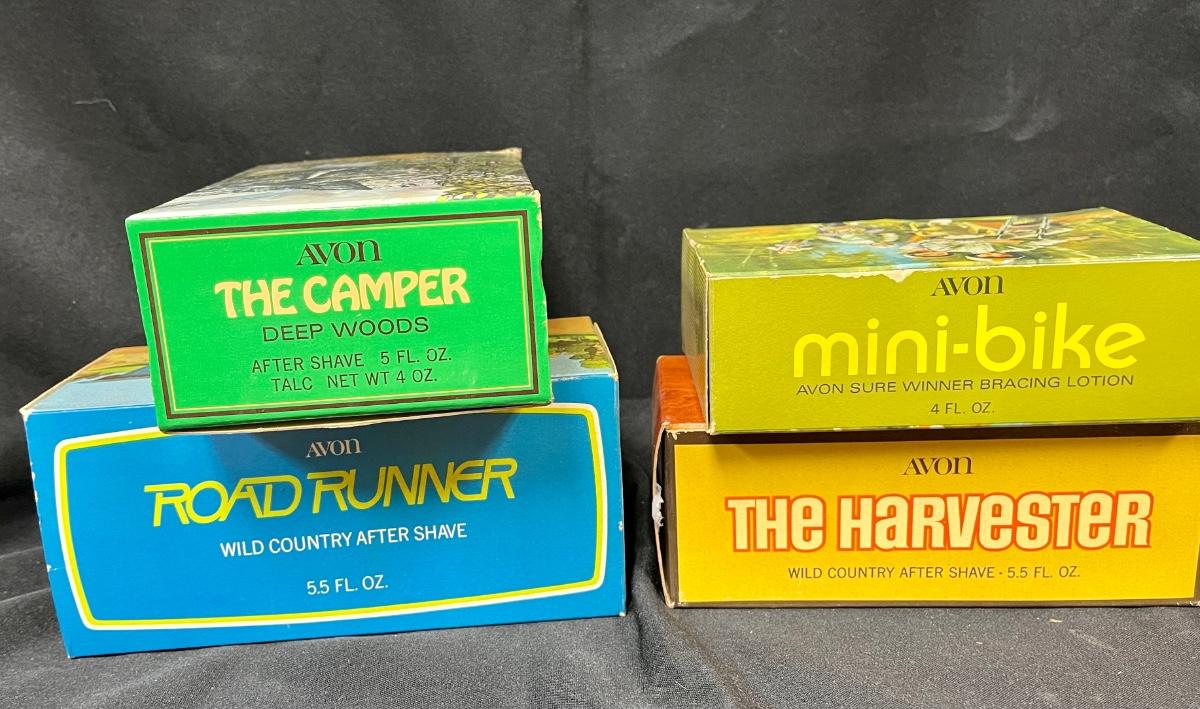 Lot of Avon cologne, bottles camper, road runner minibike, harvester boxed