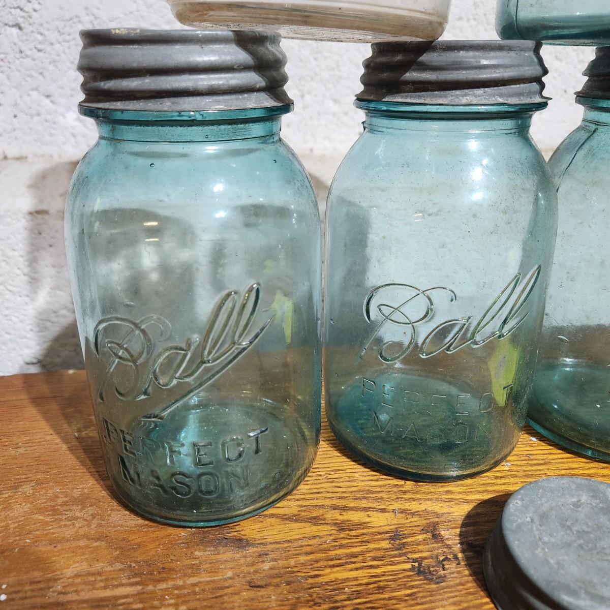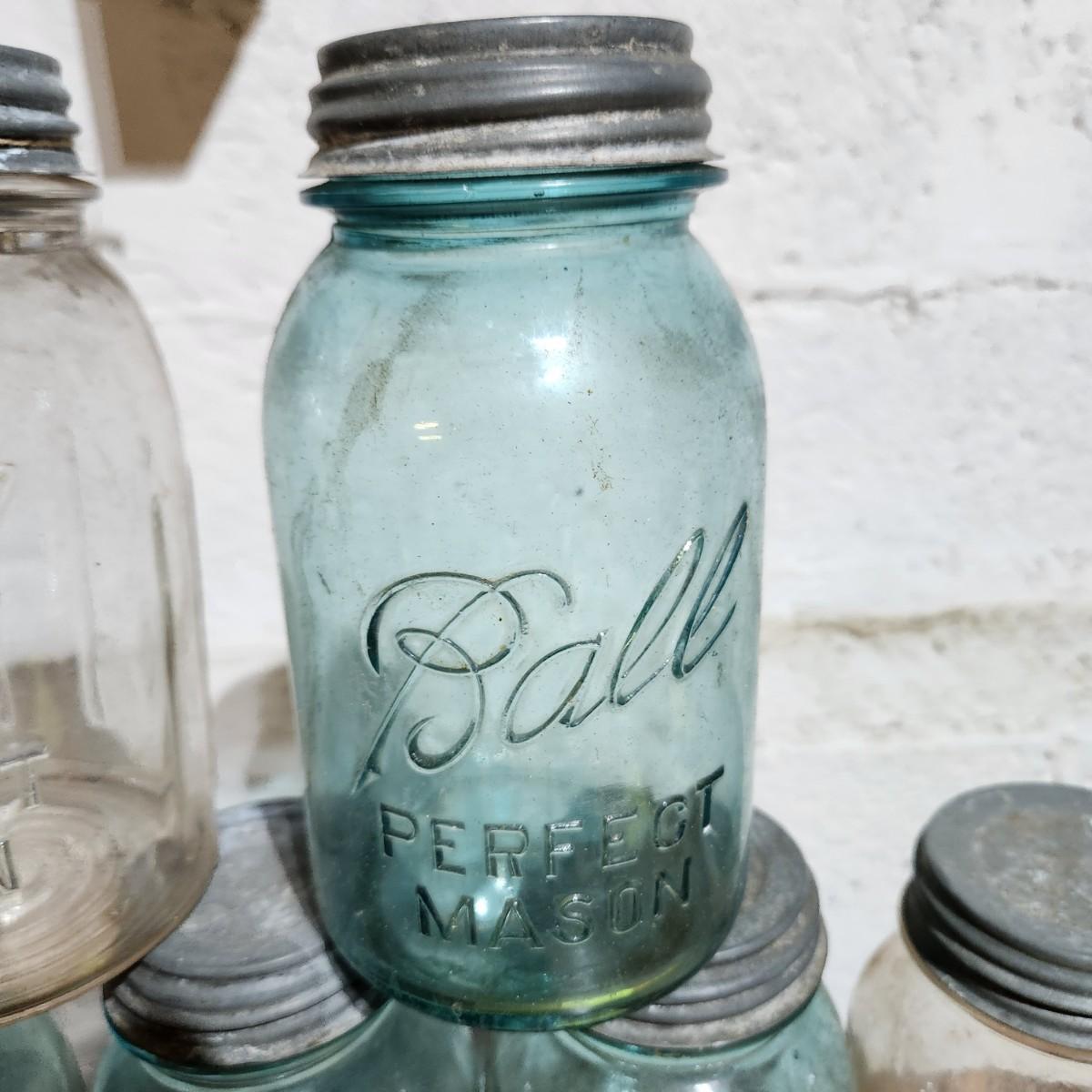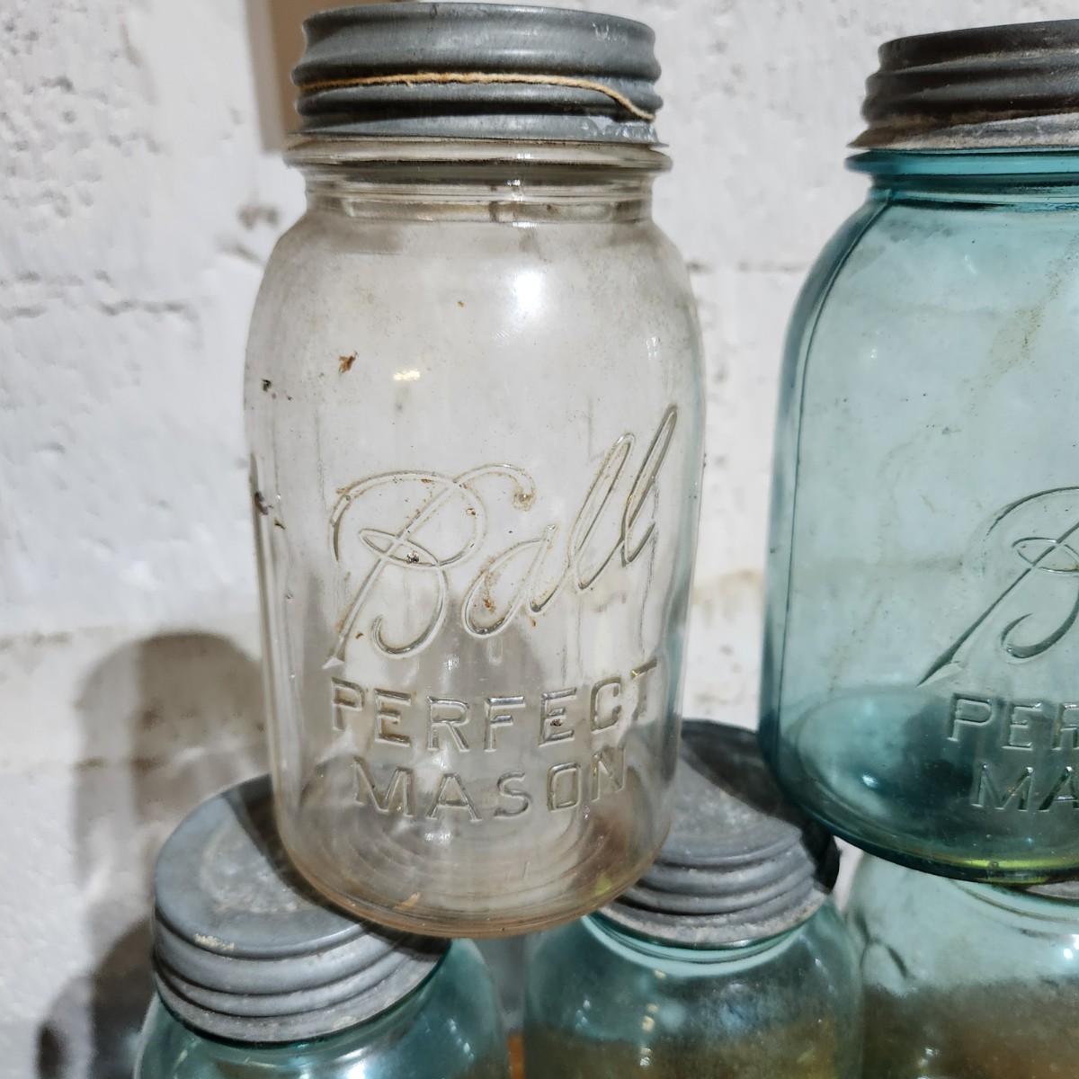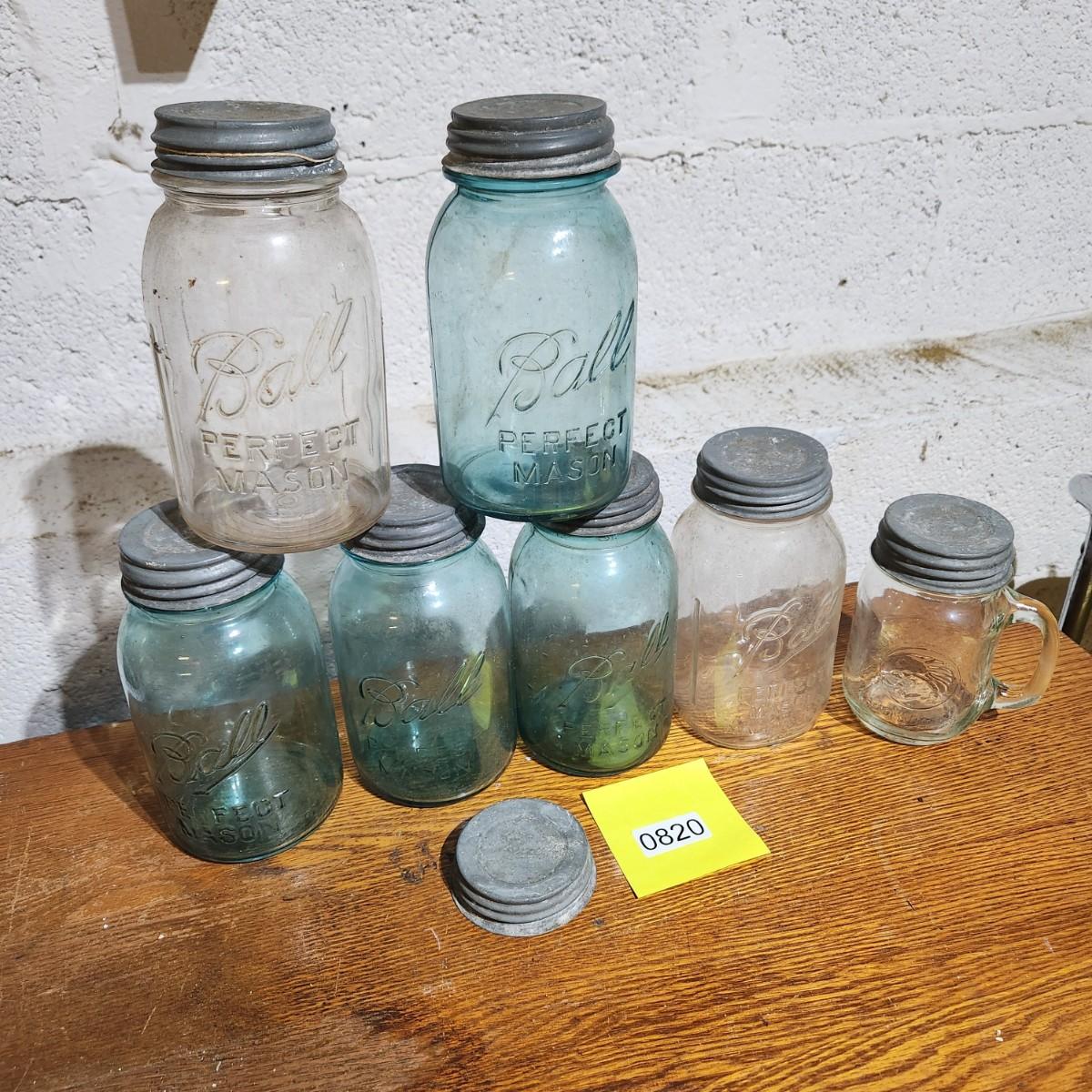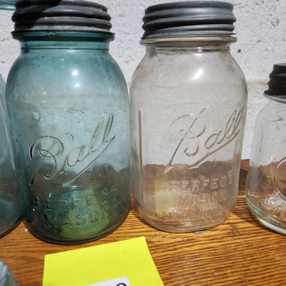 Lot of Ball Mason Jars w Zinc Tops 1,2,4,6