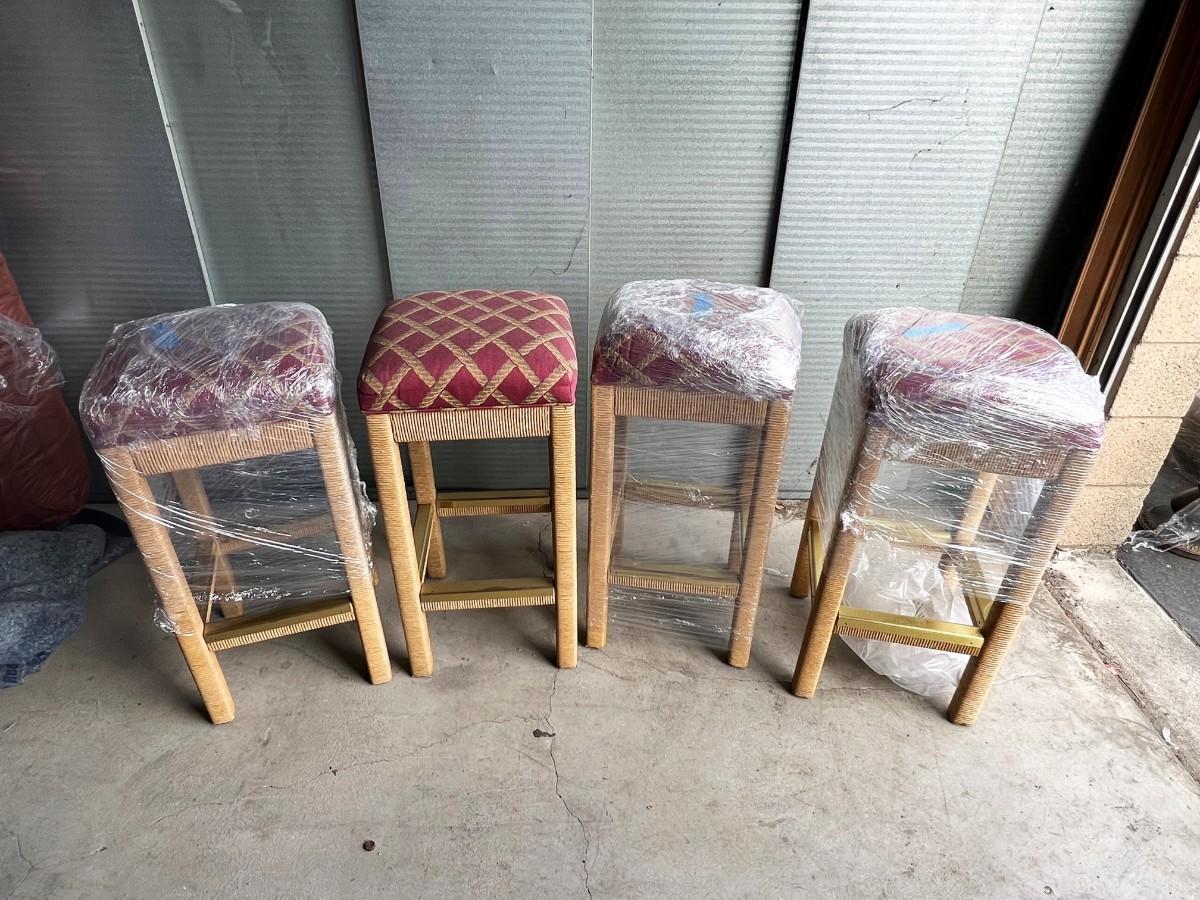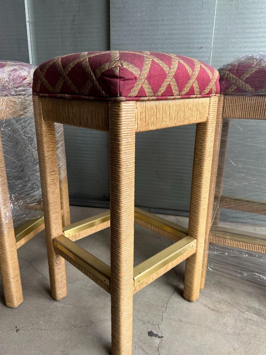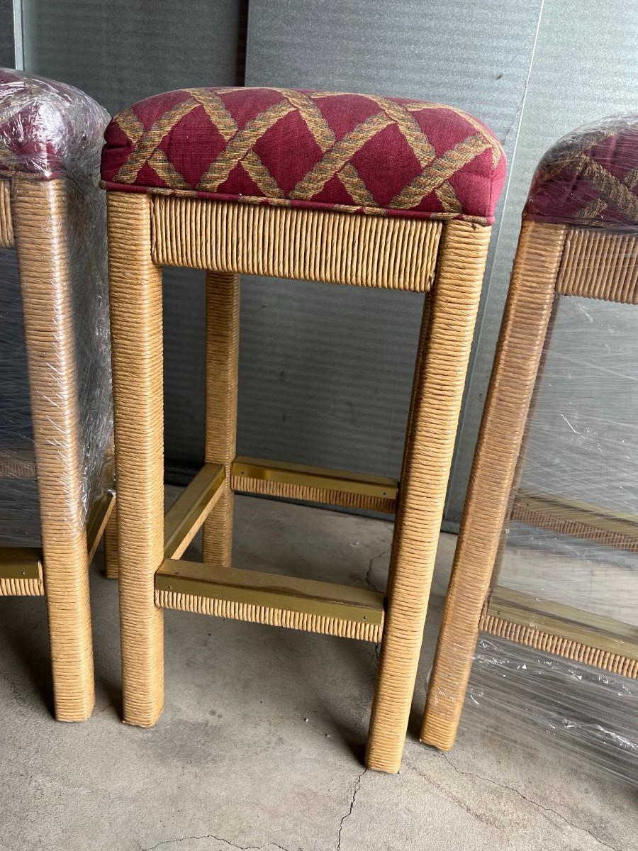 Lot of Bamboo Style Cushioned Bar Stools by Henry Link