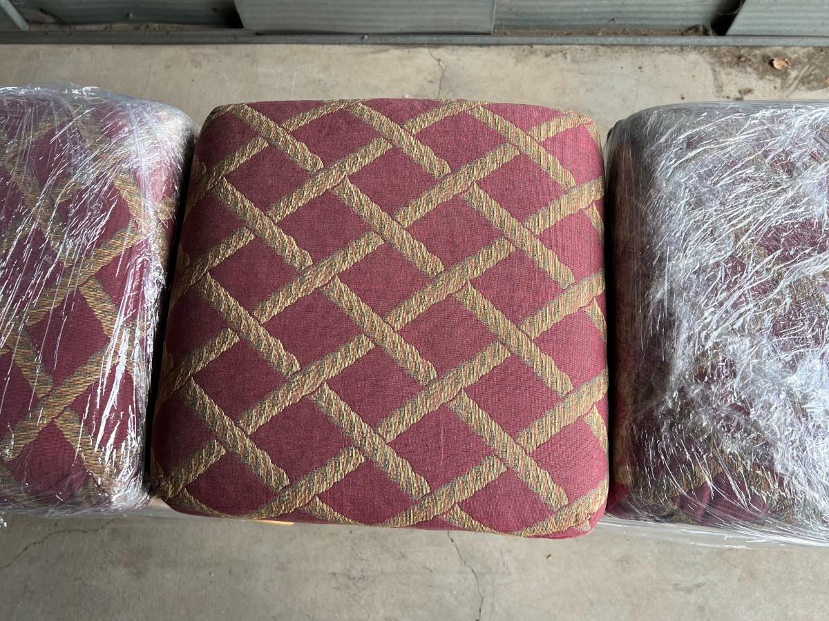 There is no significant damage to the cushions or stools and is in overall good useable and displayable condition. Check pictures for more details and for sizing.