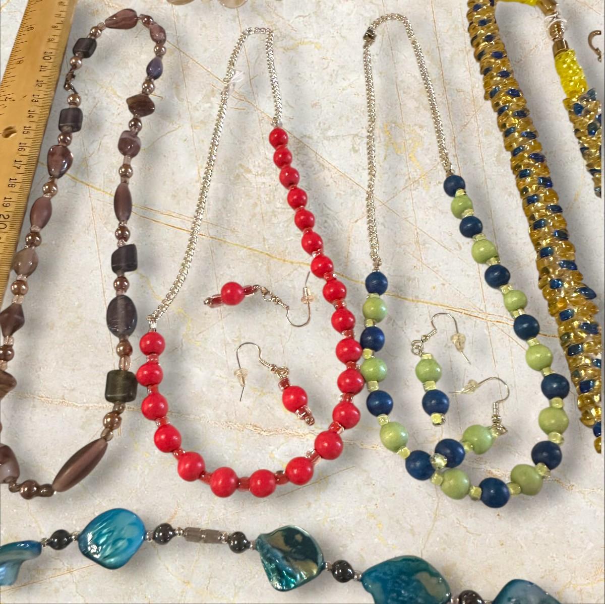 Lot of Beaded Necklaces, Most Handmade-gemstone and glass beads