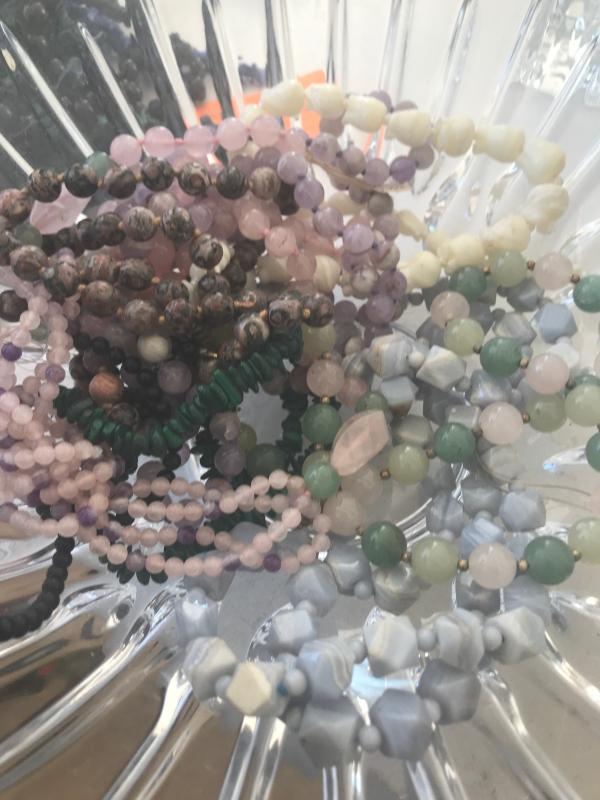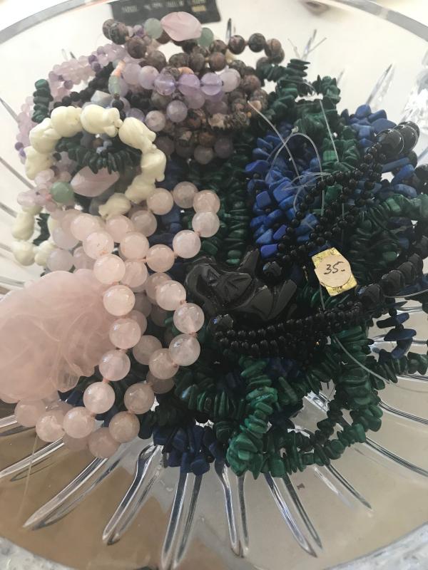 This lot came from a jewelry store in Hawaii that closed down in the 80s. I've had this stashed away for years. I'm no stone expert, but come on by and take a look for yourself ... Most are on strings, and some are ready to wear. The crystal bowl shown the picture is NOT included.
