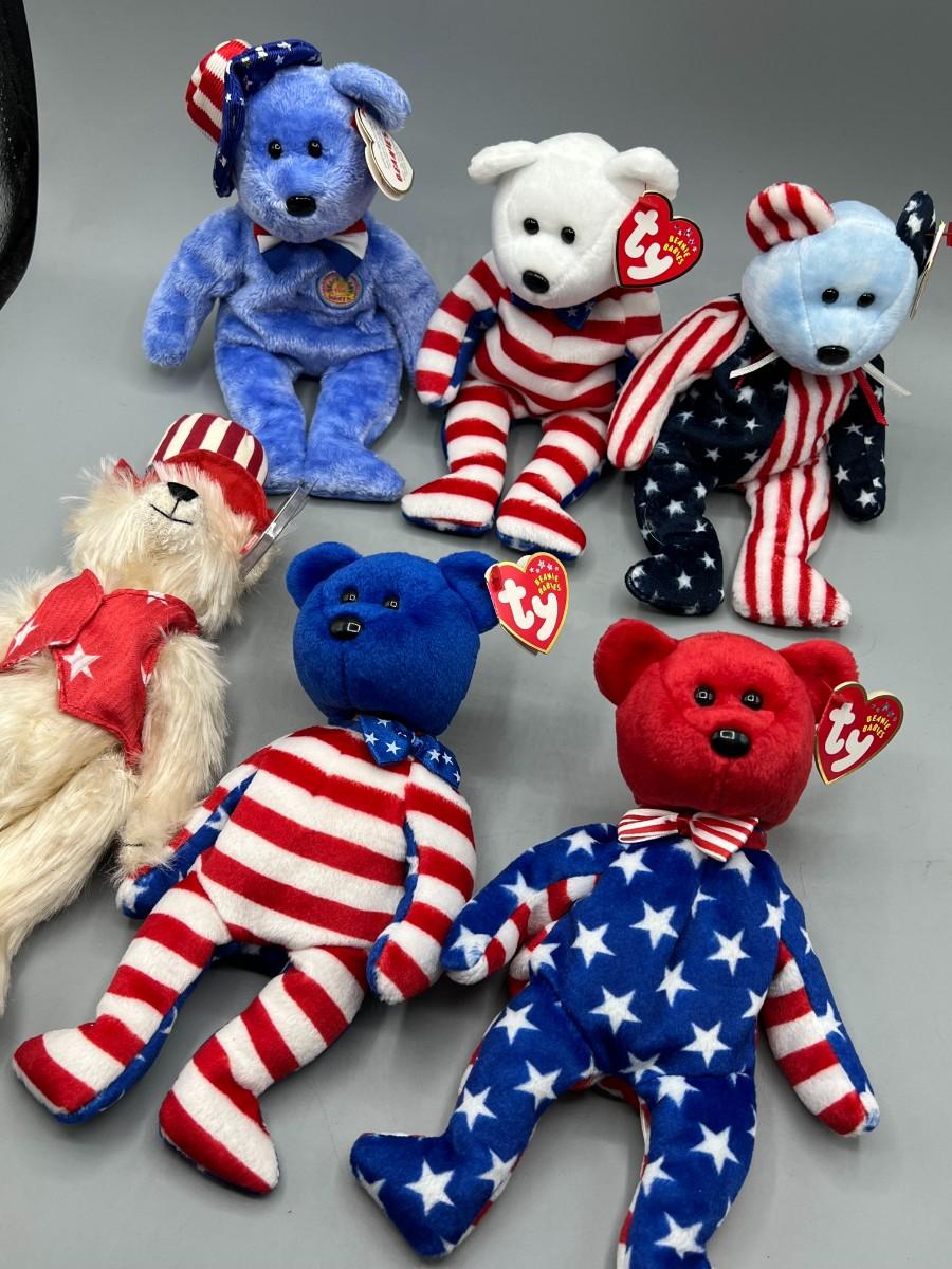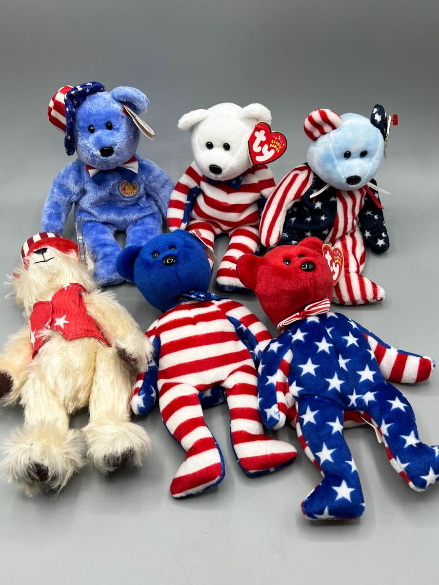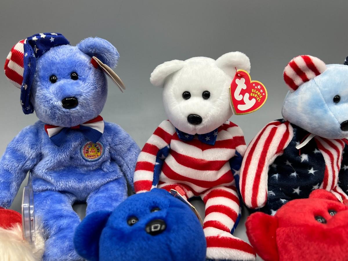 Lot of Beanie Babies American Patriotic Stars & Stripes Collectible Plushies Lot 2