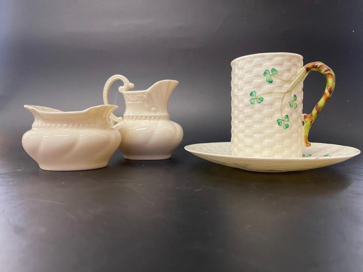 Lot includes sugar and creamer and cup with saucer.  All in excellent condition.
