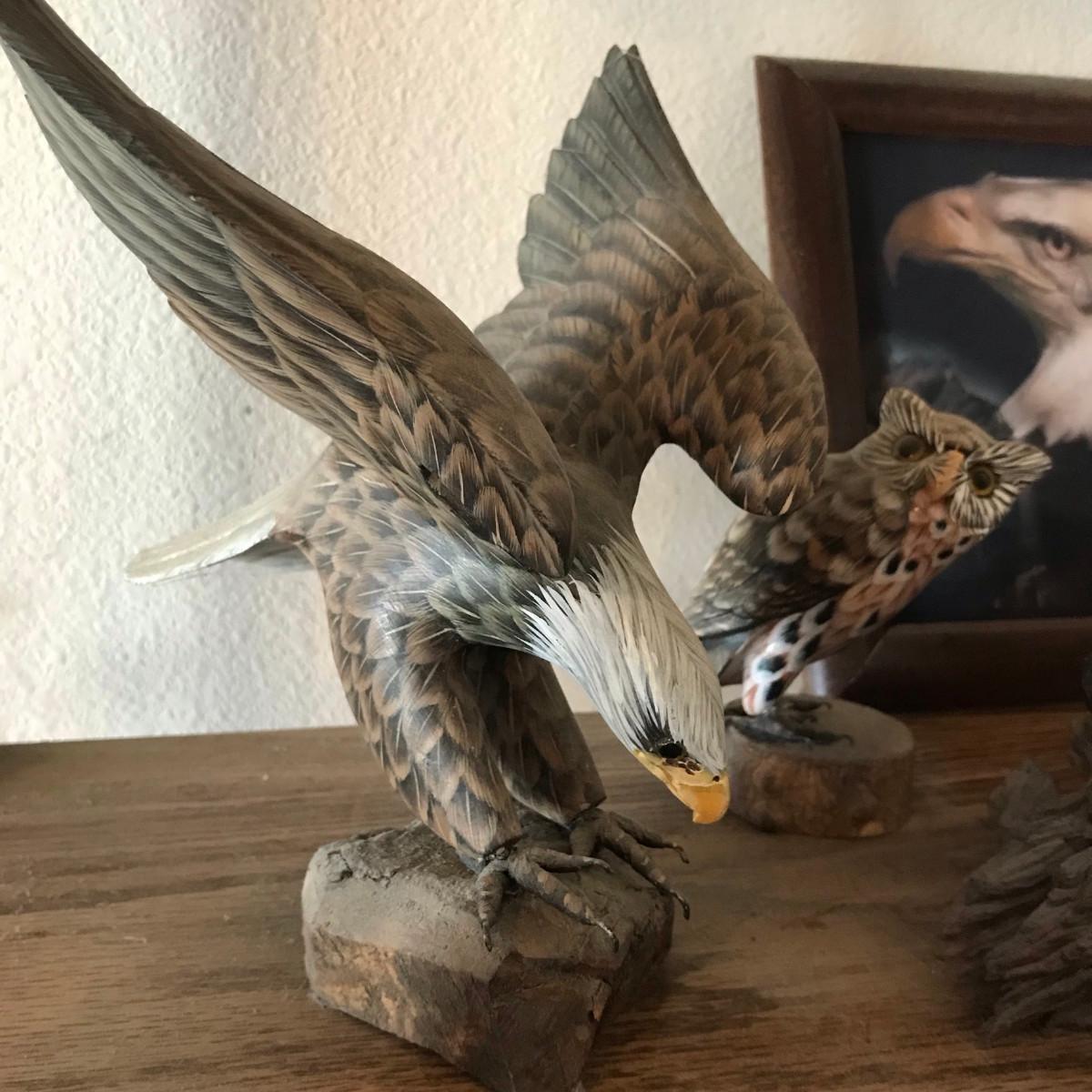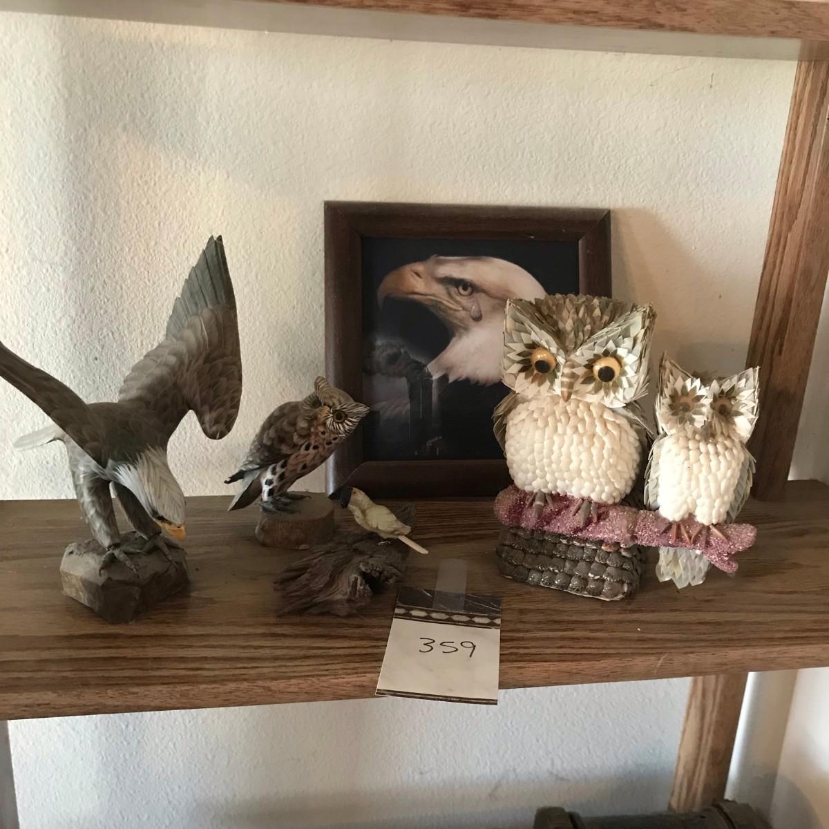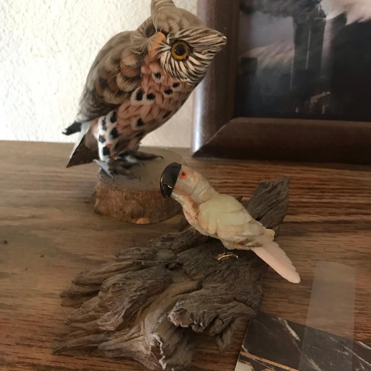 The owl pair is made of sea shells.
