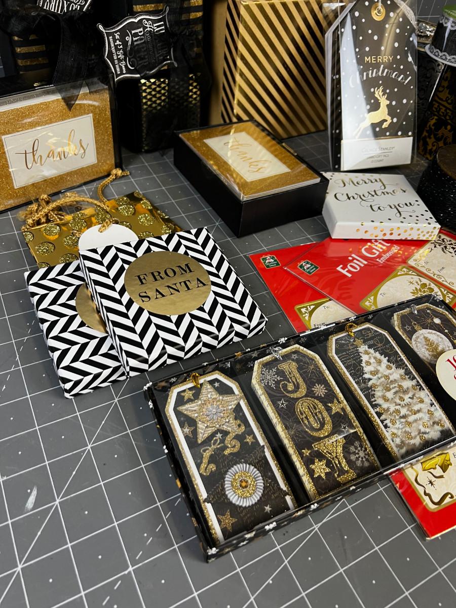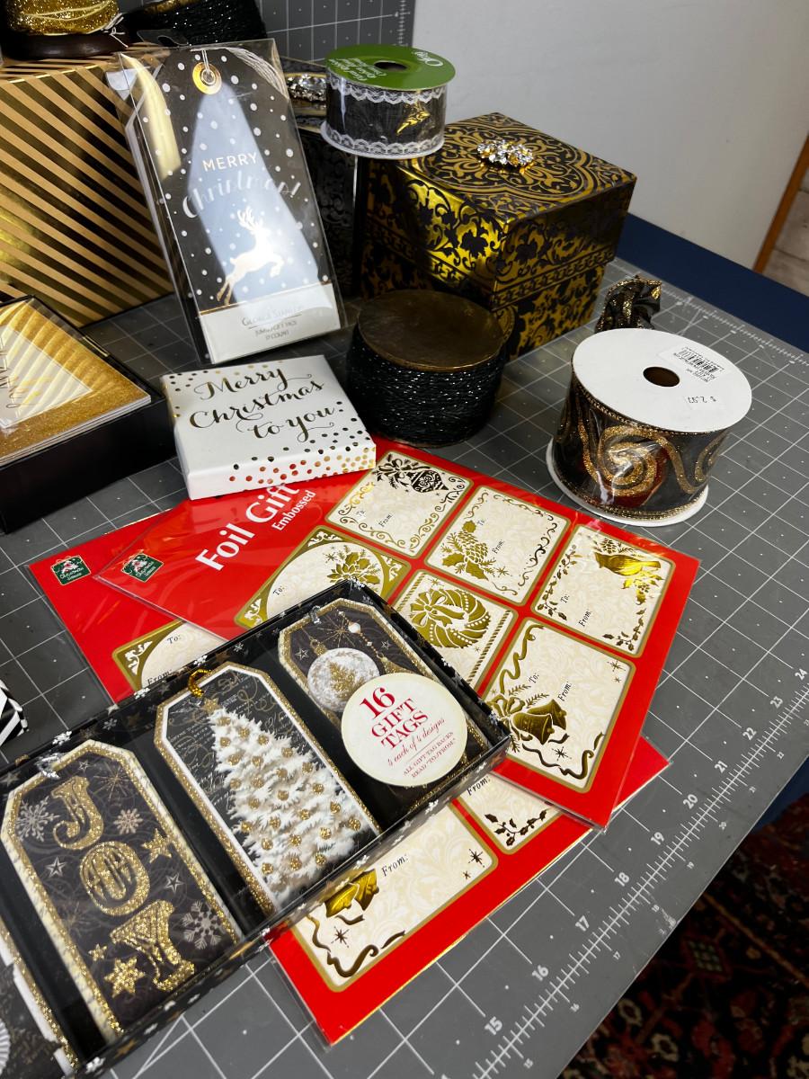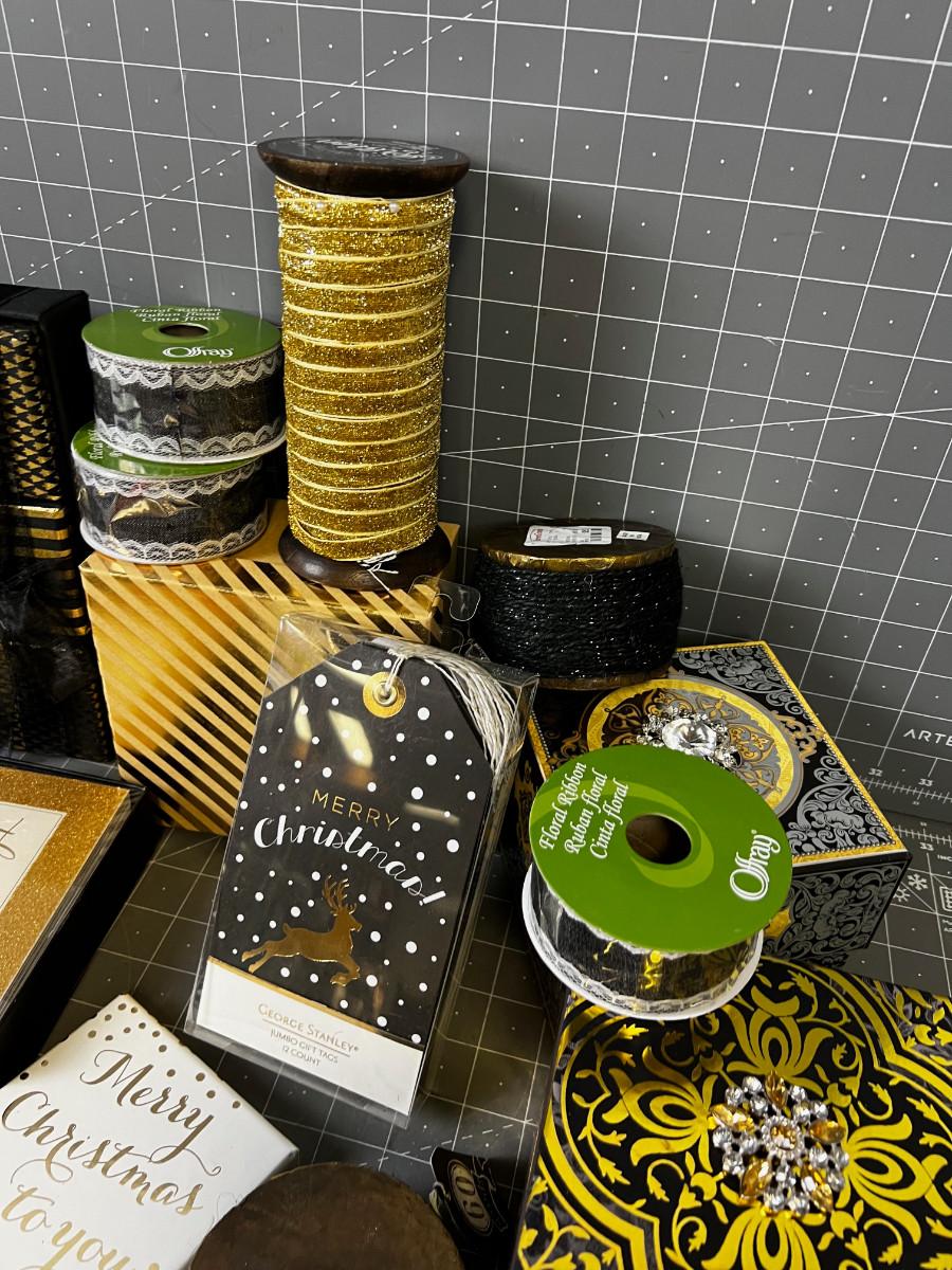 Lot of Black Gold and Silver Boxes, Tags and Ribbons