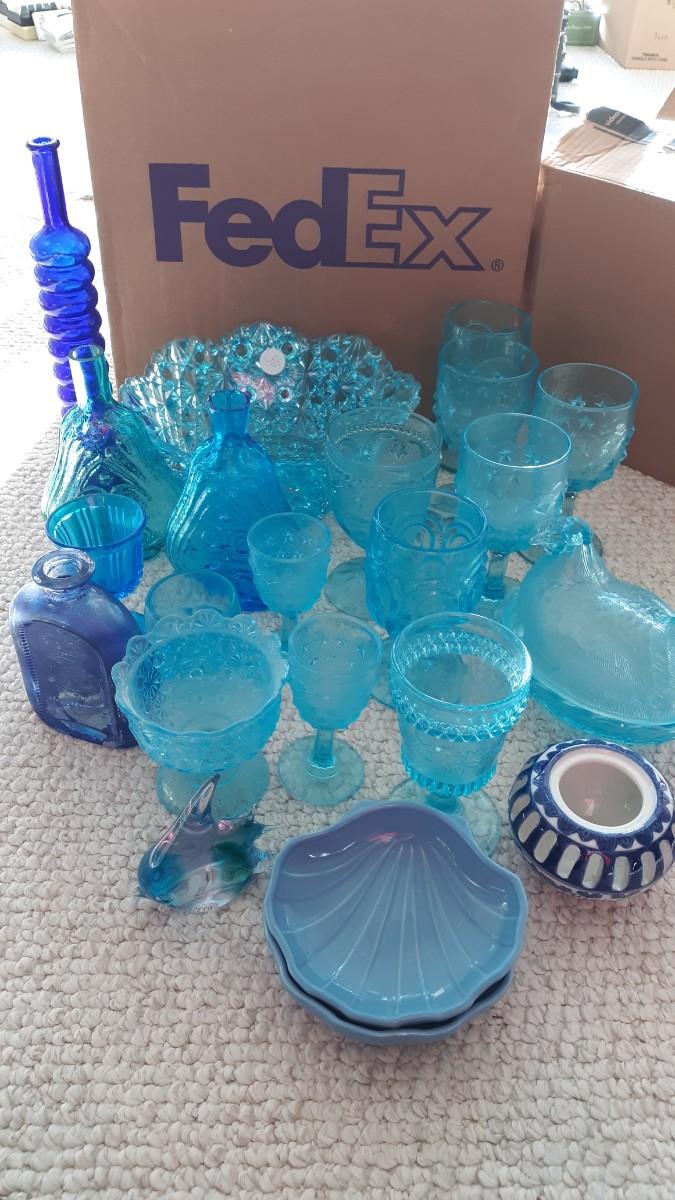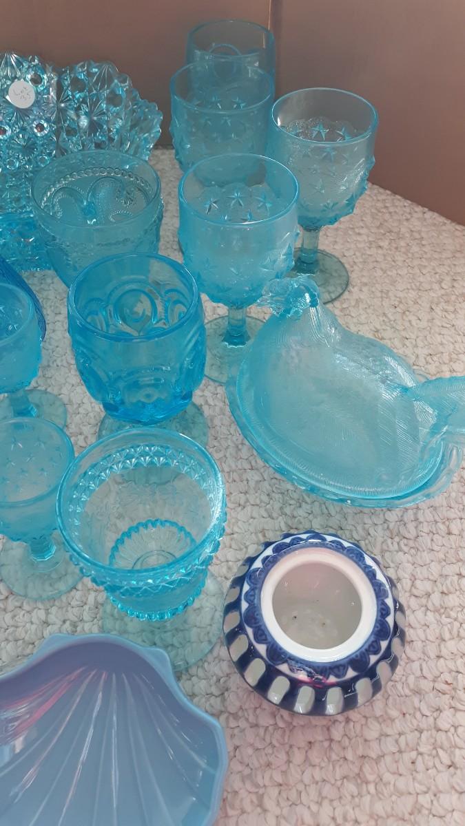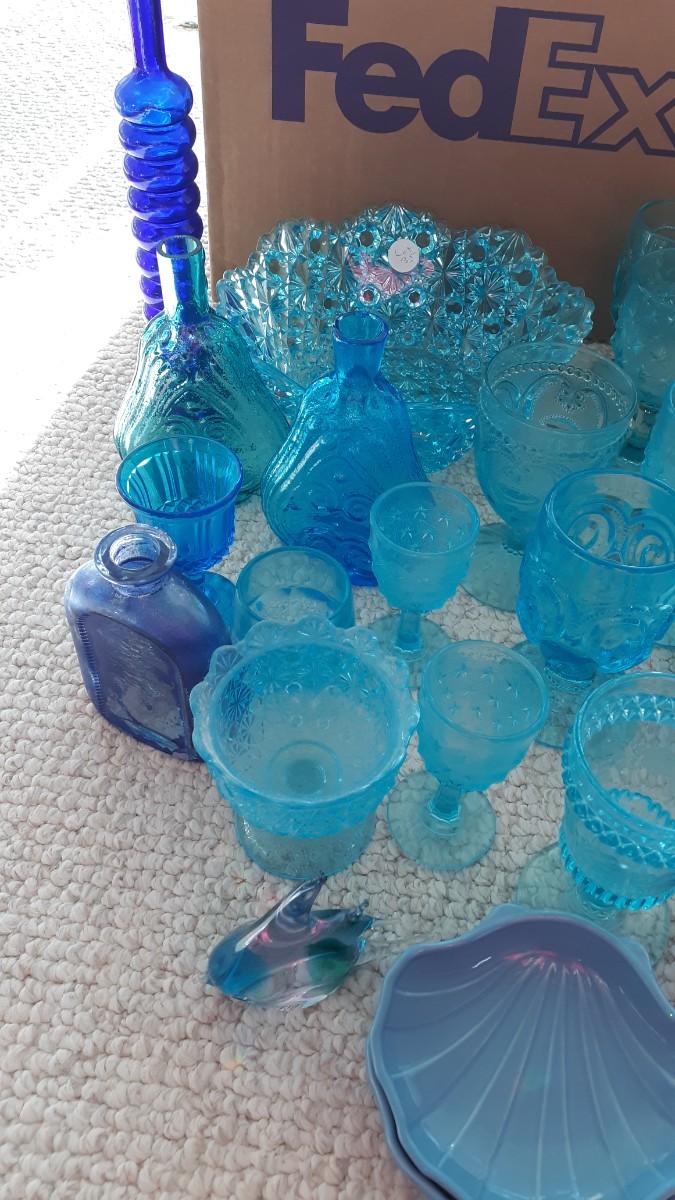 Lot of Vintage Blue Glass