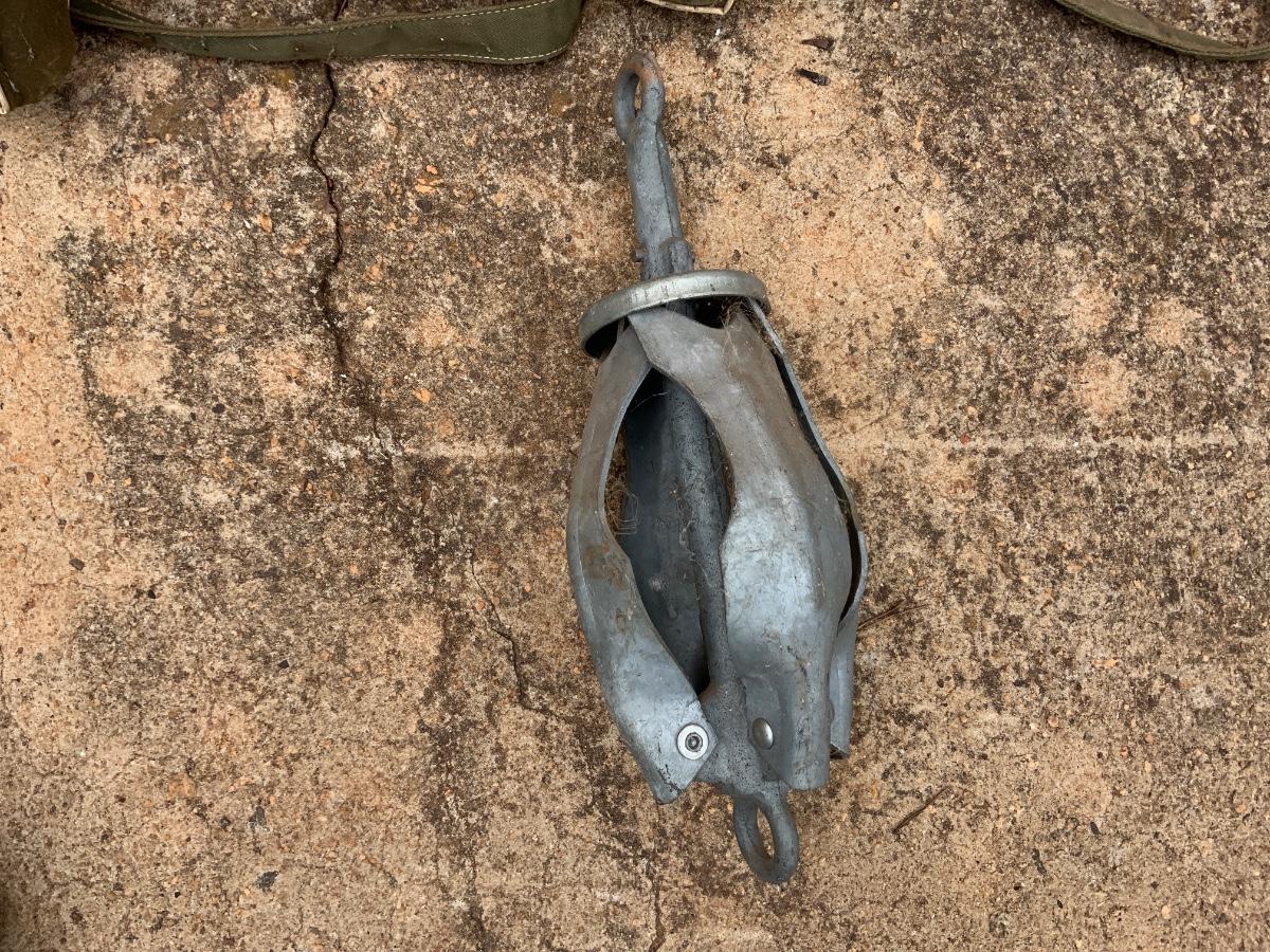 Lot of Vintage Boat cushions and Anchors. Buyers note* Anchors are heavy if wanting to ship. Also included is a large fishing net.
